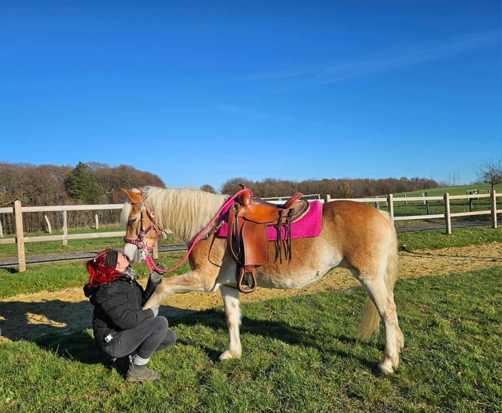 Haflinger-Stute brav, gelassen & ein echtes Freizeitpony Eckdaten: • Name: Diva • Rasse: Haflinger • Geschlecht: Stute • Alter: 12 Jahre • Stockmaß: ca. 1,50 • Ausbildungsstand: Freizeitpony, geritten im Gelände • Preis: 5900,- Zum Verkauf steht unser hübscher Haflinger-Stute DIVA “ ein ehrlicher, zuverlässiger und liebevoller Partner, der mit seinem charmanten Wesen und seiner coolen Art begeistert. DIVA ist: – absolut brav und unkompliziert im täglichen Umgang – ruhig, freundlich und immer gut gelaunt – geht sowohl alleine als auch in der Gruppe entspannt ins Gelände – kennt Kinder, Hunde und Landmaschinen – steht brav beim Putzen, Satteln und Schmied – ein echt tolles Pony, das Freude an der Arbeit und am Miteinander hat Mit seinem ausgeglichenen Charakter und seiner Gelassenheit ist Toni das perfekte Freizeitpony für Reiter, die ein zuverlässiges, nervenstarkes und unkompliziertes Pferd suchen – ideal für Ausritte, Freizeit oder Bodenarbeit. Perfekt für: Freizeitreiter, Familien oder Wiedereinsteiger, die ein sicheres, treues und freundliches Pony suchen, mit dem man einfach Spaß haben kann. Unsere Pferde: – regelmäßig entwurmt – vom Schmied & Osteopathen betreut - AKU-MICROCHIP -E-PAß ist immer dabei . Hofladen: Zubehör, Sättel & Trensen erhältlich Transport auf Wunsch günstig organisiert ✅ Unser Service: – 3 Monate Umtauschrecht – Proberitt: 35 €, jedes weitere Pferd 25 € (beim Kauf am selben Tag angerechnet) – 100 € Sofort-Rabatt bei Abholung/Transport am selben Tag – Persönliche & ehrliche Beratung Anfragen bitte nur telefonisch: 0171 – 4001968 Täglich erreichbar: 8–20 Uhr ⚠️ Keine E-Mail oder WhatsApp ⚠️ Alle Angaben ohne Gewähr
