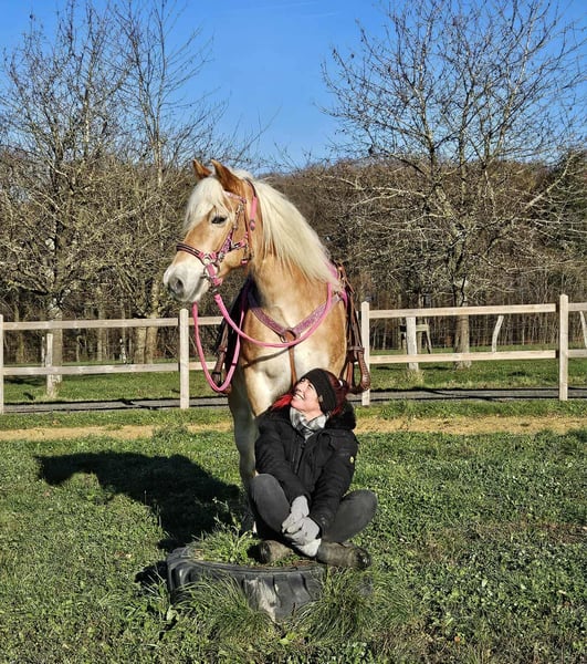 Achat d'une jument Haflinger calme, détendue et véritable poney de loisir Caractéristiques principales : • Nom : Diva • Race : Haflinger • Sexe : jument • Âge : 12 ans • Taille : environ 1,50 m • Niveau de dressage : poney de loisir, monté en extérieur • Prix : 5900 € Nous proposons à la vente notre jolie jument Haflinger, DIVA, un partenaire sincère, fiable et affectueux, qui séduit par son caractère charmant et sa nature détendue. DIVA est : – parfaitement calme et facile à gérer au quotidien – douce, amicale et toujours de bonne humeur – monte sereinement aussi bien seule qu’en groupe en extérieur – connaît les enfants, les chiens et les machines agricoles – reste tranquille lors du pansage, du saddle et du maréchal-ferrant – un poney vraiment exceptionnel, qui aime son travail et la compagnie Grâce à son tempérament équilibré et sa sérénité, Toni est le poney de loisir idéal pour les cavaliers recherchant un cheval fiable, résistant au stress et facile à vivre – parfait pour les randonnées, les loisirs ou le travail à pied. Idéal pour : Cavaliers de loisir, familles ou cavaliers en reprise, cherchant un poney sûr, fidèle et amical, avec lequel on ne peut que s’amuser. Nos chevaux : – régulièrement vermifugés – suivis par le maréchal-ferrant et l’ostéopathe – toujours avec microchip et passeport électronique Espace boutique : Accessoires, selles et briderie disponibles Transport organisé à prix avantageux sur demande ✅ Notre service : – 3 mois de droit d’échange – Essai : 35 €, chaque cheval supplémentaire 25 € (déduit en cas d’achat le même jour) – 100 € de remise immédiate lors de la récupération ou du transport le jour même – Conseils personnels et honnêtes Pour toute demande, merci de nous contacter uniquement par téléphone : 0171 – 4001968 Disponible tous les jours de 8h à 20h ⚠️ Pas de mails ni WhatsApp ⚠️ Toutes les informations sont données sans garantie