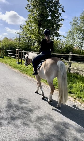 Amy Deluxe – vielseitig, lieb und arbeitsfreudig Amy ist im Umgang absolut lieb und unkompliziert. Sie zeigt sich beim Schmied sehr brav (schmiedefromm) und ist auch im täglichen Handling angenehm. Im Gelände ist sie sicher unterwegs und macht hier viel Freude. Sie ist kein reines Anfänger- oder Kinderpony, da sie gerne gearbeitet und gefördert werden möchte. Aktuell unterstützt uns ihre Reitbeteiligung (14Jahre) Unter dem Sattel bringt sie bereits Erfahrung mit: Sie war beim Vorbesitzer mehrfach auf Turnieren unterwegs und konnte dort auch A-Platzierungen erreichen. Um da anzuknüpfen ist ein Verladetraining notwendig. Ihre Stärken liegen klar in der Dressurarbeit sowie in der Bodenarbeit – insbesondere Longieren und Horsemanship machen ihr großen Spaß. Auch Ausritte genießt sie sehr. Stangen oder Springarbeit ist nicht möglich, sie wird in der Vergangenheit eine schlechte Erfahrung gemacht haben. Mehr Infos bei Nachfrage. Sie liebt es nachts in ihrer Box zu stehen. Kein Offenstall mit großer Gruppe Keine 24 Weide im Sommer Keine großen Gruppen Aufgrund ihres zarten Körperbau, sollte der Reiter nicht über 65 Kilo wiegen. Sie ist sehr rangniedrig und geht jedem Stress aus dem Weg. Gesucht wird ein liebevolles Zuhause, in dem sie weiter gefördert und sinnvoll beschäftigt wird. Keine Reitschulen oder Ähnliches. Es ist kein Notverkauf, nur wenn alles passt gebe ich sie ab. Bei dem Preis gebe ich alles an passendem Zubehör mit. Sie war frisch beim Zahnarzt und wird monatlich beim Physio vorgestellt. Bei Interesse oder für weitere Informationen freuen wir uns über eine Nachricht.
