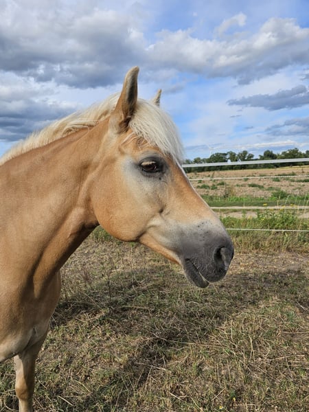 Fieke - eine bildhübsche Haflingerstute, geboren im Jahr 2012, mit einem Stockmaß von etwa 150 cm. Sie ist im Stutbuch I des Ponyverbands Hannover eingetragen und verfügt über einen OX-Anteil von 0,000%. Ihr korrektes Gebäude, ihre Gesundheit und ihr freundlicher Charakter machen sie zu einer vielseitig einsetzbaren Stute, die sowohl für die Zucht als auch als zuverlässiger Freizeitpartner bestens geeignet ist. Sie wurde regelmäßig entwurmt und geimpft, osteopathisch untersucht (ohne Befund) und ihre Zähne wurden kürzlich gemacht. Fieke kennt sowohl Boxen- als auch Weidehaltung und ist mit der Herdenhaltung vertraut. Sie zeigt sich stets brav im Umgang, ist schmiede- und verladefromm sowie zuverlässig beim Tierarzt. Auch im Kontakt mit anderen Pferden ist sie sozial und ausgeglichen. Im Umgang mit Menschen ist Fieke sehr zugewandt, freundlich und neugierig. Sie ist aufgeschlossen, lernwillig, aufmerksam und bringt viel Motivation mit - Eigenschaften, die sich auch unter dem Sattel zeigen. Fieke ist gut geritten, zeigt sich brav in der Bahn wie im Gelände und verfügt über gute, schwungvolle Grundgangarten. Sie hat ihre Leistungsprüfung erfolgreich abgelegt und kennt darüber hinaus auch die Arbeit am Boden. Züchterisch ist Fieke besonders interessant: Sie stammt aus einer sehr guten Linie, ist eine tolle Mutter und zeigt sich auch anderen Fohlen gegenüber stets freundlich. Fieke ist eine absolut liebenswerte, vielseitige Stute mit viel Potenzial und Herz - ideal für Menschen, die einen treuen Partner für Freizeit, Zucht und gemeinsame Abenteuer suchen.