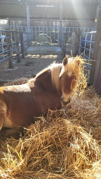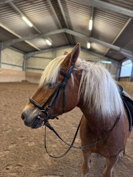 Ich hatte gehofft, mit meiner Haflingerstute Shakti (St. Alhamine) alt zu werden, aber ich kann ihr aus gesundheitlichen Gründen nicht mehr gerecht werden und muss sie deshalb verkaufen. Shakti ist ein großrahmiger (ca. 153cm) Dunkelfuchs, geboren am 20. 4. 2012 im Gestüt Hürtgenwald. Ich besitze Shakti seit 8 Jahren und habe sie mir zu einem verlässlichen Geländepferd herangezogen, mit dem ich bis zum letzten Winter täglich zwei- bis dreistündig alleine im Gelände unterwegs war. Shakti hat einen hohen Bewegungsdrang und geht fleißig vorwärts. Sie ist aufmerksam und erwartet von ihrem Reiter klare Ansagen, wenn sie etwas entdeckt hat, das sie beunruhigt. Danach meistert sie die Herausforderung souverän. Shakti kennt auch Ausritte mit anderen Pferden und geht dabei in jeder Position. Da sie neugierig und intelligent ist, arbeitet sie auch in gelegentlichen Dressur-und Springstunden gerne mit und freut sich über jede neue Anregung. Sie lernt schnell und ist stolz darauf Gelerntes vorzuführen. Shakti ist im Umgang absolut brav und kooperativ, Tierarzt und Hufbearbeitung sind kein Problem. Sie ist gerne mit Menschen zusammen und möchte gelobt werden, ist jedoch zu lebhaft, zu intelligent und zu sensibel, um ein Kinder-oder Anfängerpferd zu sein. In der Weidegruppe ist mein Pferd freundlich und niedrigrangig. Shakti ist gesund, hat aber so schlechtes Hufhorn, dass ein Beschlag absolut nicht möglich ist. Sie geht seit mehreren Jahren unsere langen Distanzen gut mit Hufschuhen, wobei eine regelmäßige fachlich korrekte Hufbearbeitung nötig ist. Im Winter steht sie in einer Einzelbox mit Paddock und hat keine Probleme mit Paddockmatten; der 24-stündige Weidegang von Mai bis Ende Oktober ist ebenfalls barfuß problemlos möglich. Shakti soll in eine artgerechte Haltung kommen, die ihr als rangniedrigem Pferd ermöglicht in Ruhe zu fressen und zu schlafen. Ich wünsche mir für mein Pferd einen Menschen mit Erfahrung in der Pferdehaltung und im Reiten im Gelände, der sich freut mit ihr aktiv Zeit zu verbringen und der ihr eine Lebensstellung bieten kann. Ein Western- und/oder Dressursattel kann gegen zusätzliche Gebühr übernommen werden. Preisvorstellung: € 5000 (VB) Es gilt Platz vor Preis.