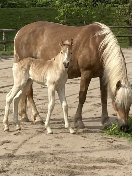 Large-framed dark chestnut mare for sale as a leisure horse. She is currently ridden two to three times a week. The mare has previously been used for breeding and has been under saddle training for approximately six months. Due to her training level, she is not suitable for beginners. In daily handling, she is an absolutely well-behaved horse. Available by phone between 3:00 PM and 7:00 PM.