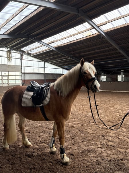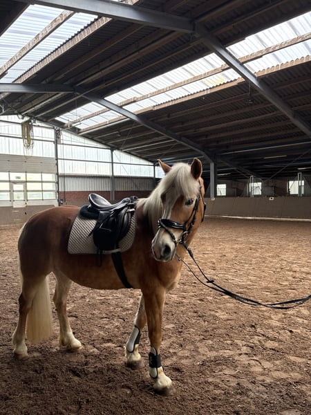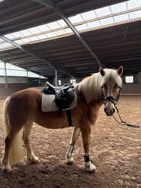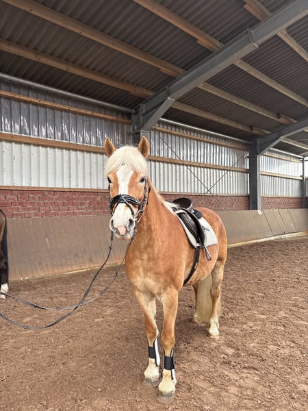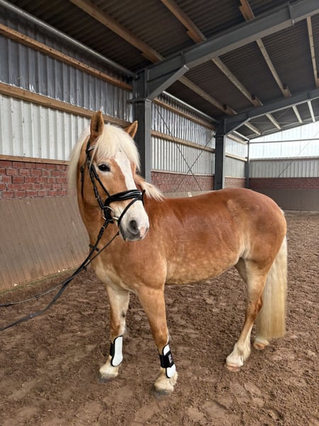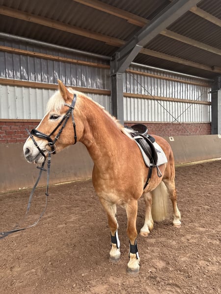 **Verkaufsanzeige: Haflinger-Stute (2010)** Zum Verkauf steht eine charmante Haflinger-Stute, geboren im Jahr 2010. Mit einem Stockmaß von ca. 150 cm ist sie die ideale Begleiterin für den Freizeitbereich. Mia ist eine unerschrockene, zuverlässig und vielseitig ausgebildete Stute. Sie kennt das reiten im Gelände, springen sowie die Arbeit vom Boden. Sie ist leicht zu sitzen und angenehm in der Anlehnung, wodurch sie dem Reiter ein sehr gutes Reitgefühl vermittelt. Zudem ist sie sehr gut longiert und zeigt sich stets brav im Umgang. Mia ist gesund robust und dank ihrer soliden Grundausbildung ist es auch für weniger erfahrene Reiter, gut zu händeln, setzt jedoch ein gewisses Maß an Reiterfahrung voraus. Bei Interesse gerne per WhatsApp melden unter +49 179 9335354. - Inklusive Equipment
