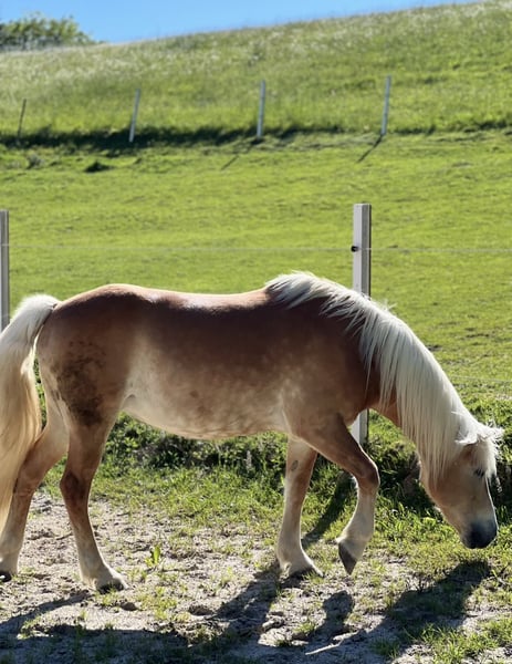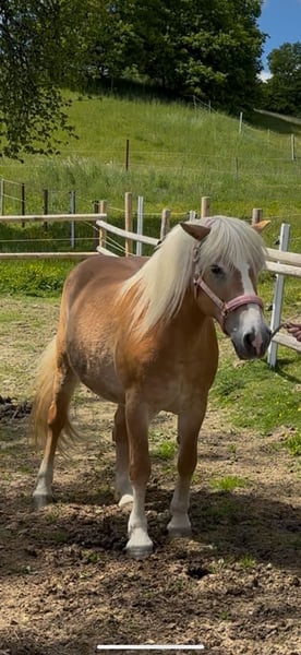 Germina a wonderful Haflinger mare With a heavy heart, we must say goodbye to our 18-year-old Haflinger mare. Mina is a very sweet mare to handle; she always wants to please. For her age, she still has a lot of energy and is very eager to work; we have never had any health issues with her. When lunging, she cooperates wonderfully and responds well to all commands, although sometimes she can be a bit stubborn, as Haflingers tend to be. She is very sensitive and needs a person who can provide her with security; she is an insecure horse and needs someone she can rely on, which is why we are only offering her to experienced riders. Riding her can be a bit complicated; it's not impossible, but it would require time and patience. Feel free to ask for more details if interested. Just write :) She is kept in a loose housing system with an older gelding, where she is rather low in the hierarchy. She is good to load and has never had any issues with the farrier, even with louder tools. As I am a beginner, I have come to the difficult decision that she needs a person with more experience who can provide her with the security she requires. This is not an urgent sale, and we are looking for the best possible home for her. Quality over price.