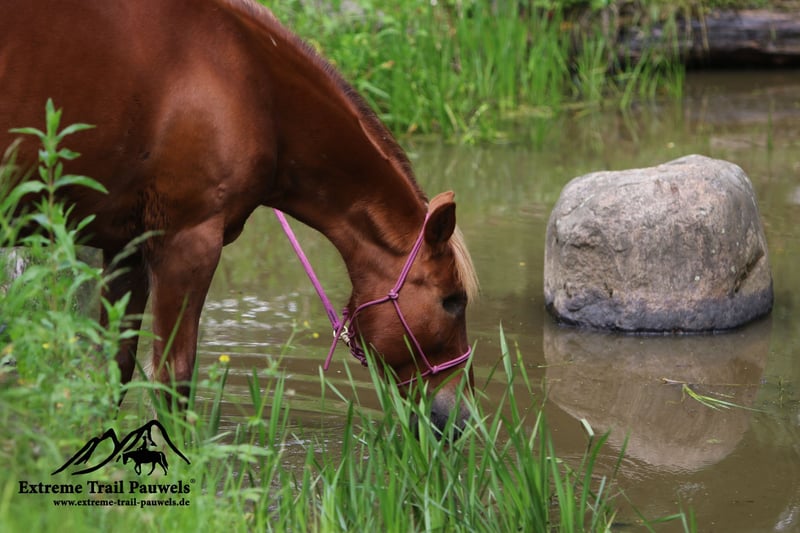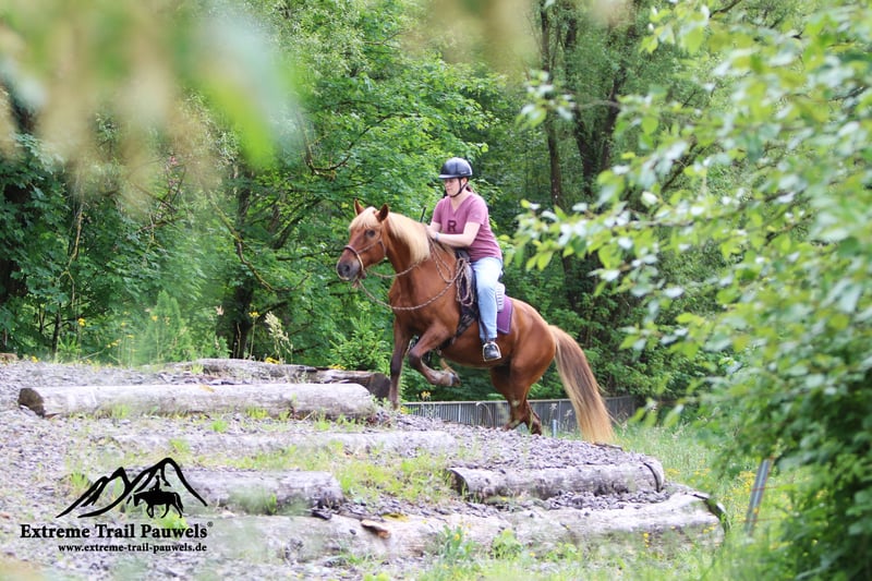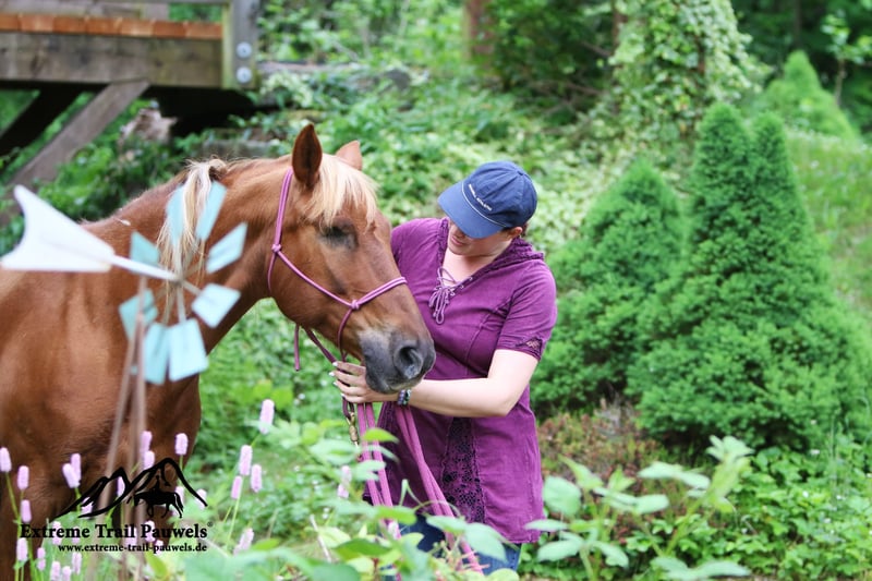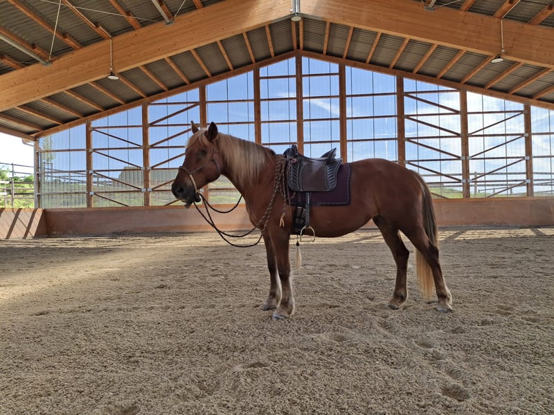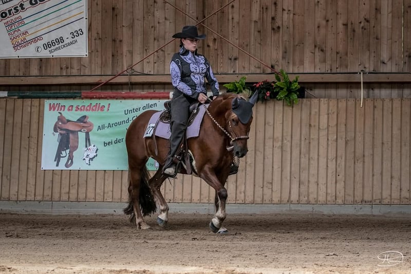 Leider muss ich mich aus persönlichen Gründen von meiner Stute Nele trennen. Die schwerste Entscheidung die ich je treffen musste. Nele ist eine 2007 geborene Haflinger x Knabstrupper Stute und 143 cm groß. Ihr wurden Aufgrund von periodischer Augenentzündung in 10/2016 beide Augen entfernt. Ihre Blindheit schränkt sie überhaupt nicht ein! Ich suche für Nele ein Zuhause bei dem sie wieder die Nummer 1 ist. Sie möchte was tun und ist bei vorhandenem Vertrauen für jeden Spaß zu haben. Halle, Platz, Gelände, Kurse, Turniere, Extreme Trail, Kutsche, bekannte und unbekannte Anlagen. Alles kein Problem für sie. Sie wurde von mir im Prinzip Freizeitmäßig Richtung Western und Dressur geritten. Sie kennt Doppellonge, Longe, Handarbeit, Ansätze von Zirzensik, Rinderarbeit, Working Equitation und man kann sie auch Frei Laufenlassen. Es klingt unvorstellbar aber sie hat wirklich kein Handicap durch die Blindheit! Von der Haltung her ist ihr auch vieles bekannt. Grundsätzlich würde ich mir hier tagsüber eine kleine Gruppe von max 6 Pferden und nachts Box wünschen. Perfekt wäre zeitgesteuerte Heufütterung da Nele zu Übergewicht neigt. Aktuell hat sie 24/7 Heu mit engmaschigem Netz und trägt dabei eine Fressbremse um das auszugleichen. Traumhaft wäre natürlich wenn sie mit entsprechend angepasster Fütterung von der Fressbremse weg käme. Wichtig: Koppel im Sommer, wenn nur stundenweise ggfs ist es auch gar nicht möglich. Selbstverständlich ist Nele schmiedefrom und Barhuf (6 Wochen Rhytmus) Sie lässt sich super alleine oder auch mit einem Pferd verladen. Mann kann sie mit der richtigen Technick auch ohne Hilfe komplett alleine verladen. Ihr Zähne sind jährlich im August bearbeitet. Sie ist auch vollständig Turnierkonform geimpft inklusive Herpes. Ich gebe sie nur mit Schutzvertrag (1€) ab und nur wenn alles passt! Zubehör (Vollausstattung vorhanden) kann käuflich erworben werden: KEIN Händler, Schulbetrieb oder als reiner Beisteller! Wenn du mit dem Herzen siehst und du dir vorstellen könntest ein neuer Partner von Nele zu werden, dann melde dich bitte!