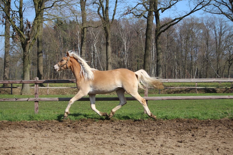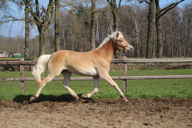 Luxus-Haflingestute mit einer Endgröße von 1,60 m Diese Stute ist mit nur 2 Jahren bereits 1,56 m groß und wächst noch. Daher halte ich sie für die Zucht für zu groß. Ideal als Sportpferd, ein Haflinger im KWPN-Format. Vater: Nachtwind (Z-Dressur) Mutter: T-Laura-W (Antinor), Z-Dressur Stute mit guten Bewegungen Erste Prämie bei der Körung erhalten Mit Papieren Geimpft und entwurmt PSSM-frei