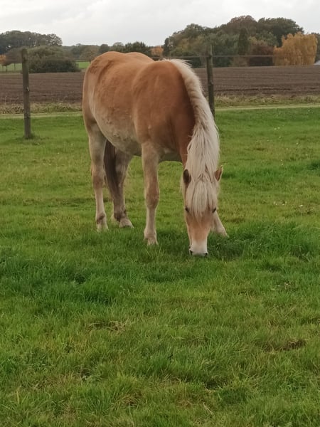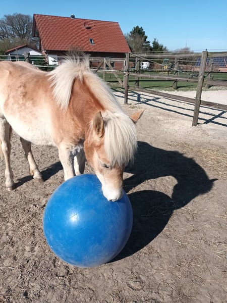 Unerschrockene 2-jährige Stute abzugeben. Sie überzeugt durch ihre angenehme, ruhige, aber nicht schläfrige Art. Ihre Mutter ist die Staatsprämienstute Abba von Alban. Die ältere Vollschwester ist 2024 Staatsprämienstute in Münster-Handorf geworden.