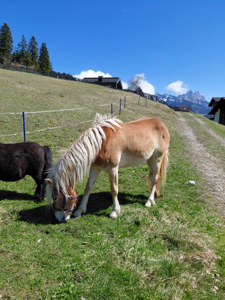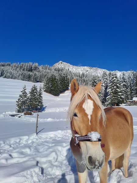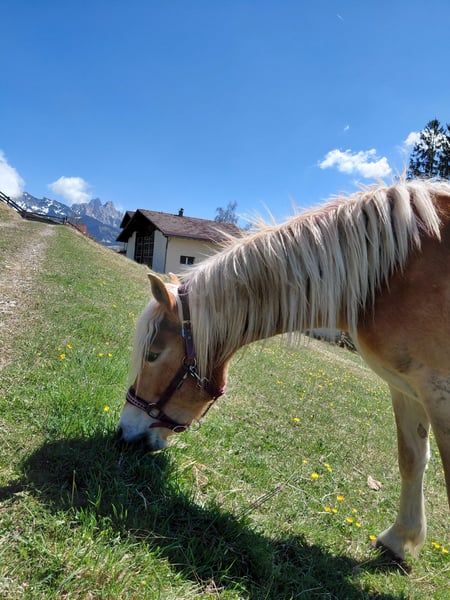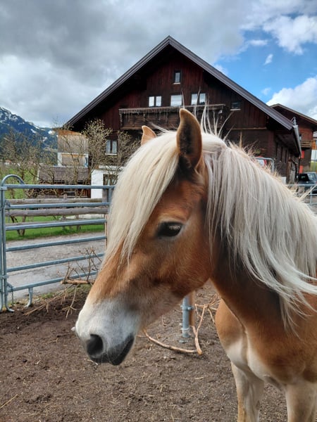 Abzugeben ist eine bildhübsche Haflinger-Stute, geb. im April 2023, Lichtrotlehmfuchs, mit einem derzeitigen Stockmaß von ca. 137 cm. Die junge Haflinger-Dame besticht durch ihr freundliches, neugieriges und sehr Menschen bezogenes Wesen. Sie ist gut sozialisiert, artig im Umgang und zeigt viel Potenzial für die weitere Ausbildung. Derzeit gehen wir spazieren und machen Führübungen und Sie ist als Handpferd beim reiten mit dabei. Sie hat beim ausreiten auch schon eine Satteldecke mit Gurt drauf, was Sie problemlos macht bzw. akzeptiert. Sie ist an Kinder gewöhnt. Maloija steht in einer kleinen gemischten Herde in einem Offenstall und zeigt sich sehr verträglich im Umgang mit Stuten und Wallachen. Sie ist barhuf (Hufe werden alle 6 Wochen gemacht), geimpft und gesund. Den Sommer verbrachte Sie auf einer Almweide. Auch diesen Sommer könnte Sie hier bei uns nochmals einige Monate auf der Almweide verbringen (bis ca. mitte September). Gesucht wird ein toller Platz, bei dem Sie jetzt dem Alter entsprechend gefördert wird. Kein Notverkauf, deshalb wird Sie nur abgegeben, wenn sich ein nachweislicher Bestplatz für Sie findet!!