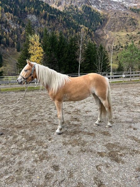 Neila is a charming 2.5-year-old Haflinger mare with a particularly long, white mane and a loving, well-balanced temperament. She is farrier- and loading-safe, knows the complete foal’s ABC, and consistently shows confident footing—even on uneven terrain. During the summer, she was on the mountain pasture, which has made her sure-footed and resilient. Neila is low in the pecking order within her herd, affectionate, gentle, and very people-oriented. Thanks to her solid pedigree and correct conformation, she is suitable for both breeding and recreational riding or sport. Please feel free to contact me for more information or if you are interested. Viewing by appointment is possible.