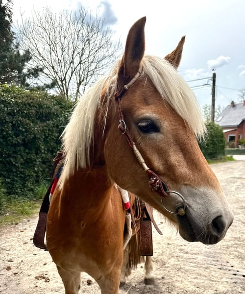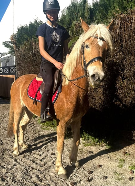 Super lieve & brave haflingermerrie Deze toffe dame is 5j en meet ong 147 +~ Ze is een echte allrounder; Ze heeft hiervoor lessen meegelopen. Ze kan een sprongetje. Kent basis in de piste. Gaat graag wandelen en is verkeersmak. Ze heeft een veulentje gegeven. Lief paard in omgang en met andere paarden. Staat bij ons 24/7 in de kudde. Zal lessen meelopen.