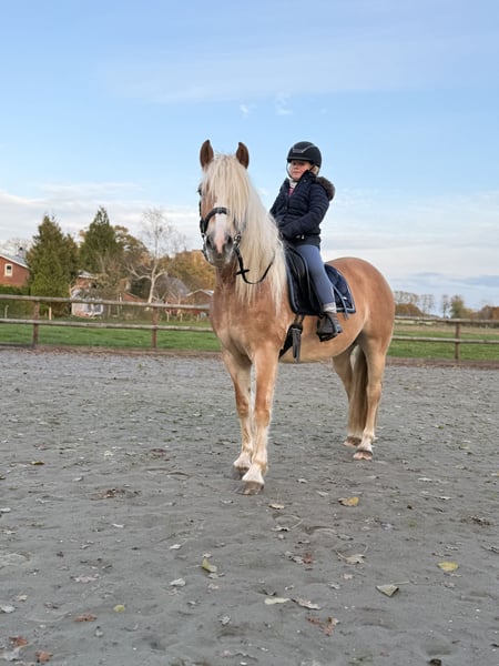 Wir verkaufen unsere typvolle, menschenbezogene Haflingerstute aus Zeitgründen in beste Hände. Sie wurde 4-jährig angeritten, anschließend nochmals auf die Koppel gestellt und wird seither schonend weitergearbeitet. Sie läuft sicher in allen drei Grundgangarten, zeigt dabei stets eine motivierte Arbeitseinstellung und möchte ihrem Menschen gefallen. Erfahrungen & Charakter: • Sicher mit Begleitpferd im Gelände • Gelassen im täglichen Hoftrubel: Kinder, Hund, Katze, Hühner, Traktor • Schmiede- und verladefromm, fährt auch allein ruhig im Anhänger • Kennt Offenstall sowie Box • Souverän und entspannt auf fremden Anlagen • Bisher immer gesund, kann problemlos auf die Weide Hinweis zum Ausbildungsstand: Aufgrund ihres Alters ist sie nicht für Anfänger geeignet. Sie benötigt einen sicheren, erfahrenen Reiter, der sie weiter fördert. Mit weiterer Ausbildung wird sie sicher auch eine tolle Partnerin für größere, fortgeschrittene Kinder. Diese Stute ist absolut artig im Umgang, klar im Kopf und bringt beste Voraussetzungen als Freizeitpferd oder für die weitere solide Ausbildung mit. Nur in verantwortungsvolle Hände abzugeben. Bei Interesse oder Fragen gerne melden – Besichtigung nach Absprache möglich. Keine Händler oder Reitschulen
