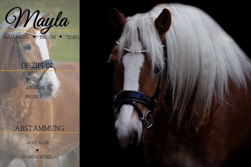 Mayla is a beautiful 2020-born Haflinger mare (Tirol Horse Breeding Association), approximately 15.5 hands. Sired by Noastalogie, Wildfang, Aras x Avalon, Armani. *Mayla* is a stunning, well-built mare with excellent conformation. She is very rideable and learns quickly. She is a pleasure to ride and offers great potential. She moves easily into the contact and is light in the hand. She is familiar with calmness training and remains unflustered, yet curious. She can also perform tricks. Out in the field, she has shown herself to be confident and reliable. She enjoys jumping and shows enthusiasm for it. An all-rounder who brings a lot of joy to her rider. Horse Dealer Dederichs – Your Partner for Horse Buying Contact & Availability: Please inquire exclusively by phone at 0173/9792139 Monday – Friday: 9:00 AM – 6:00 PM Saturday: 9:00 AM – 3:00 PM Sunday: Closed Follow us on social media! Experience our daily work with the sale horses on Instagram, TikTok & Facebook at Pferdehandlung Dederichs Discount: Receive 5% – 10% off when taking your new dream horse immediately Trial Riding & Demonstration: • Trial ride: €30 per horse (up to 2 riders), deducted from the purchase price • Public holidays: Trial ride €50 • Demonstration by our trainers: €25 per horse (including groundwork, lunging, etc.) Pre-Purchase Examination & Transport: • Many of our horses already have a pre-purchase exam (AKU) • You are welcome to bring your own veterinarian • We can arrange an examination for you • We also assist with transportation to your new home Additional Sale Horses: We have more horses available for sale that are not yet listed online. If your dream horse is not yet among them, please do not hesitate to contact us. Important Notes: • The height information is approximate and not precisely measured • All descriptions are subjective assessments by the seller and do not constitute guaranteed properties For more information, visit: www.Pferdehandlung-Dederichs.de