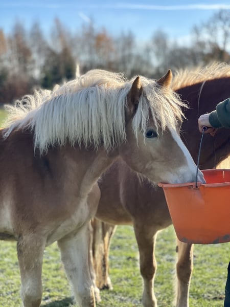 Haflinger verschiedenen Alters aus eigener Zucht und Aufzucht! Aktuelle Preise stehen bei allen dabei. • Fohlen/Absetzer von März 2025 & jünger → 2500€ • Jährlingsstute *1/25 → 3000€ • Jährlingsstute *9/24 → 3300€ (Abgabe per sofort möglich) • 2 jähriger Hengst *11/23 - kräftiges Fundament - geschätztes Endstm. ~ 1,46/1,47m → 4500€ VB • 2,5 jährige Stute - roh → 5500€ • 3,5 jährige Stute - 1,50m zZ. - roh → 6900€ VB • 5 jährige Stute - 1,45m - roh, Ponytyp, hat aktuell Fohlen von 2025 bei Fuß. Wird daher preislich wie junge 3 jährige Stute behandelt. → 5800€ VB Beim Kauf von Stute und Fohlen Sonderpreis möglich. • 5 jährige Stute VERKAUFT geritten - leistungsgeprüft - turniervorgestellt - artig mit Kindern - 1,47m eingemessen → Preisklasse 10-15T€ Genaue Informationen und Fotos auf Anfrage! Die Preise sind Selbstkostenpreise und steigen entsprechend mit weiterer Aufzucht. Bei Transport bzw. Organisation sind wir gerne behilflich. AKU darf selbstverständlich durch mitgebrachten Tierarzt durchgeführt werden. Zwischenverkauf vorbehalten. Wenn möglich bitte kurzfristig Termin vereinbaren. Besichtigungen 7 Tage die Woche möglich.