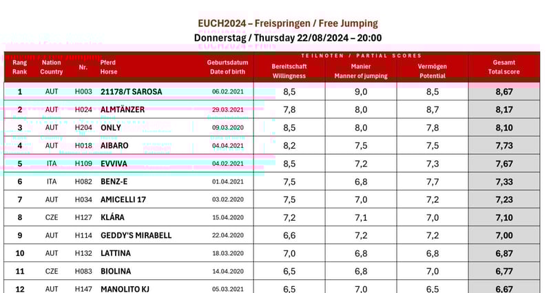 Klara è una bella cavalla di 4 anni che in futuro potrà brillare sia nell'arena del salto ad ostacoli che in quella del dressage. L'anno scorso è stata addestrata con delicatezza e quest'anno ha gareggiato con successo nel dressage di livello avanzato con una ragazza di 14 anni. È sempre impavida, ha un buon equilibrio e un contatto stabile. Le piace chiaramente anche saltare e di recente ha partecipato ai Campionati europei di salto libero. Salta molto bene ed è naturalmente attenta. Naturalmente, Klara ha anche una certa familiarità con le passeggiate di fondo ed è assolutamente semplice da gestire. Naturalmente ha una radiografia perfetta. Diversi cavalli interessanti negli altri annunci. Se cercate qualcos'altro, contattateci. Volete convincervi del nostro lavoro? Visitate la nostra pagina Facebook, dove troverete anche le recensioni dei nostri clienti stranieri.