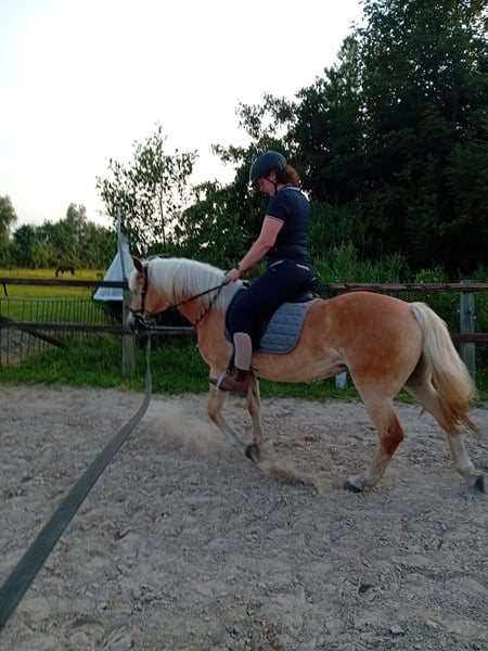 Derzeit wieder im Training. Für meine Tochter ist sie etwas zu temperamentvoll. Sie arbeitet hart für dich und möchte am liebsten jeden Tag arbeiten. Dann ist sie am besten. Lieb und ein bisschen verschmitzt. Nicht für Anfänger geeignet, aber ideal für eine geduldige Person. Sie darf weg, muss aber nicht. Wird momentan wieder im Training gearbeitet, damit der Käufer gut mit ihr weiterarbeiten kann. Letztes Jahr wurde sie auch unter dem Sattel eingeritten. Danach wurde sie nicht weiter gefördert. Sie ist offiziell beim KVTH registriert.