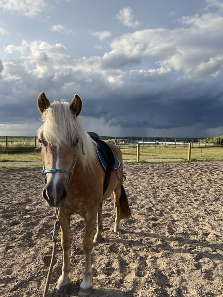 Haflingerstute, 5 Jahre- sucht liebevolles Zuhause mit Zeit und Herz Geboren Mai 2020 Vater Wapensiero Mutter Gioja Leider muss ich meine 5-jährige Haflingerstute aus Zeitgründen abgeben. Sie wird hauptsächlich im Gelände geritten. Gwendolin kennt die Basis unterm Reiter und wurde viel vom Boden aus gearbeitet. Sie zeigt sich dabei sehr lernwillig und aufmerksam. Momentan benötigt sie noch einen erfahrenen Reiter, da sie in der Ausbildung steht und einen klaren, konsequenten Umgang braucht. Mit regelmäßiger Bewegung und Förderung bin ich jedoch überzeugt, dass sie sich zu einem absoluten Verlasspferd bzw. tollen Kinderpferd entwickeln wird- sie lernt schnell und möchte immer gefallen. Sie hat einen starken, aber ehrlichen Charakter und braucht einen Menschen, der sie fordert, fördert und liebevoll, aber konsequent führt. Gwen ist schmiede- und verladefromm. Sie kennt nur Offenstallhaltung, daher wünsche ich mir, dass sie weiterhin in einem Offenstall gehalten wird. Ich wünsche mir für sie einen Platz, an dem sie beschäftigt wird und man ihr die Zeit und Aufmerksamkeit schenkt, die sie verdient. Eine Abgabe erfolgt nur, wenn alles passt. Alles weitere gern persönlich.