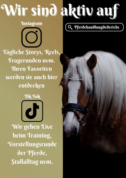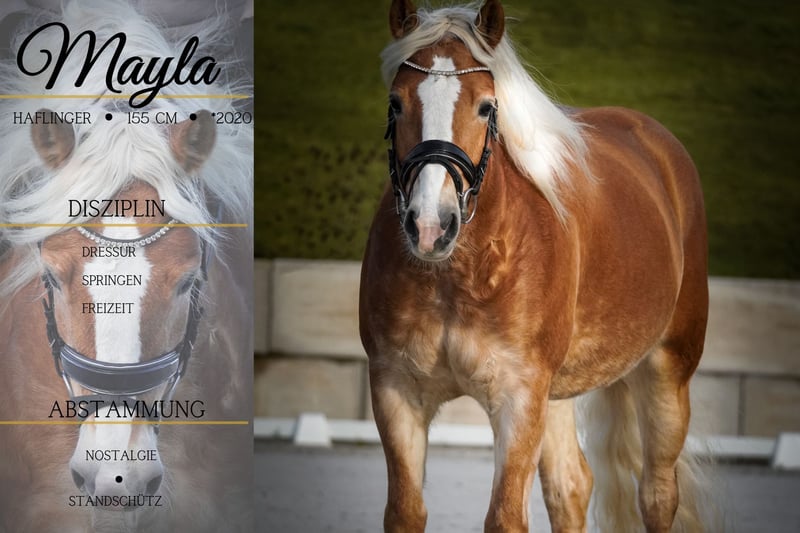 Mayla is a 2020-born Haflinger mare registered with the Tyrol Horse Breeding Association. She stands approximately 155 cm at the withers and is sired by Noastalogie, with a wild temperament, Aras x Avalon, Armani lineage. *Mayla* is a beautiful, large-framed mare with excellent conformation. She is very rideable and learns quickly. She is a joy to ride and offers great potential. She moves easily into the contact and is light in the hand. She is familiar with calmness training and remains unflustered, yet curious. She can also perform tricks. ***BE SURE TO WATCH HER VIDEO!!!*** She has also proven herself in the field. She shows enthusiasm over jumps. An all-rounder that brings a lot of joy. A current video can be found in this listing or at the following link: https://www.youtube.com/watch?v=Ou-WWDTeJDg Horse Dealer Dederichs – Your Partner for Buying Horses Contact & Availability: Inquiries please exclusively by phone at 0173/9792139 Monday – Friday: 9:00 a.m. – 6:00 p.m. Saturday: 9:00 a.m. – 3:00 p.m. Sunday: Closed Follow us on social media! Experience our daily work with sale horses on Instagram, TikTok & Facebook under Pferdehandlung Dederichs Discount: Receive 5%–10% off when taking your new dream horse immediately Trial Riding & Demonstrations: • Trial ride: €30 per horse (up to 2 riders), amount credited upon purchase • Holidays: Trial ride €50 • Demonstration by our trainers: €25 per horse (pre-riding, groundwork, etc.) Pre-Purchase Examination & Transport: • Many of our horses already have a veterinary pre-purchase exam (AKU) • You are welcome to bring your own veterinarian • We can organize a veterinary examination • We also assist with transport to your new home Other Sale Horses: We have additional horses available in our stable that are not yet listed online. If your dream horse is not yet featured, please do not hesitate to contact us. Important Notes: • Estimated height measurements are approximate and not precisely measured • All descriptions are subjective assessments by the seller and do not constitute guaranteed properties For more information, please visit: www.Pferdehandlung-Dederichs.de