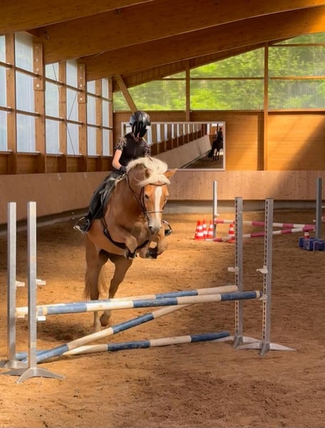 Princess Pippilotta is creating her own world just the way she likes it. She came to me at 2½ years old, and on her third birthday, I finally had the pleasure of riding her for the first time. Since then, she has been living up to her name every single day. Trained according to classical principles, she now, at 6 years old, masters all lateral movements, walk-trot transitions, Spanish walk, and much more. She is well-behaved both alone and in a group when hacking out, although she prefers to lead when in a herd. Her true passion, however, is jumping. This season, she had the opportunity to try out some competitions, where she was placed in all three starts, earning scores up to 8.0. She is used to being ridden by various riders but is looking for a steady handler with whom she can dance through her colorful world for the rest of her life. She is also very reliable with children and beginner riders. Pippilotta is a sweet pony that enjoys some fun during work but never becomes headstrong. Currently, she lives in a mixed herd in an open stable with 24/7 hay and pasture access. She is dominant in the group but also accustomed to box stall housing. She can be tried out at any time. Feel free to contact me at any time for questions: 017641573456.