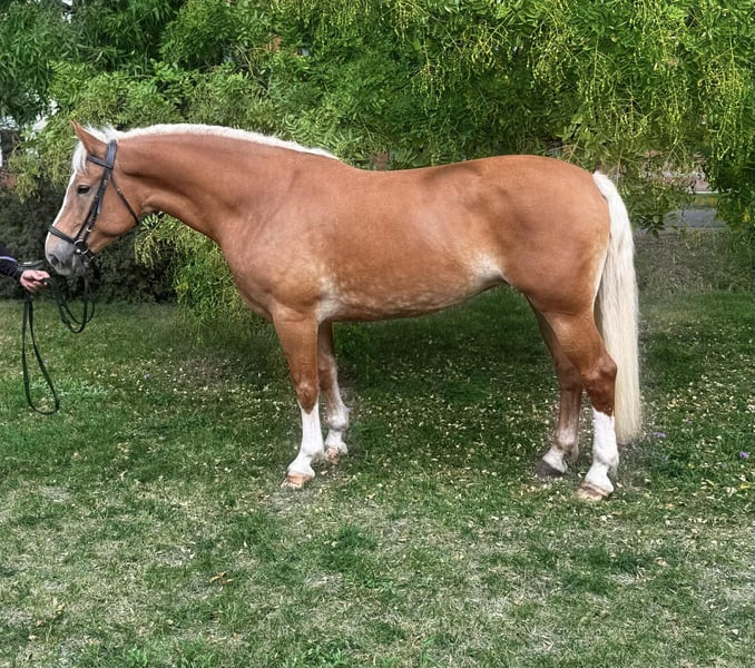 Lovely Haflinger Cross Mare – Calm, Kind and Ready for a New Home This beautiful 7-year-old Haflinger cross mare is looking for a new place to call home. She has been used as a therapy and leisure horse thanks to her very calm and kind nature. She worked mainly with children and has always been gentle, patient and easy to trust. She stands 162 cm (measured with a stick) and is very easy to handle both on the ground and under saddle. She’s comfortable to ride, well-behaved, and listens nicely to her rider – perfect for beginners, children, families, or riding schools looking for a quiet and intelligent horse. She also works beautifully in harness, showing a steady rhythm and calm attitude. Healthy, sound, and ready to bring joy and peace to her new home. Can be viewed and tried by appointment. Transport can be arranged if needed. WhatsApp: +4917640177894