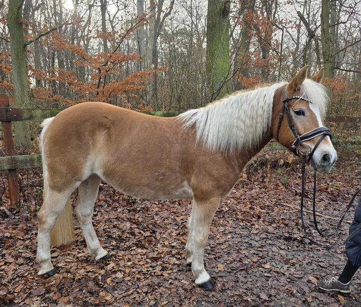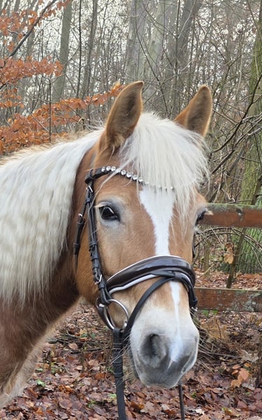 Amira is an adorable Haflinger mare with versatile talents. She is easy to ride, has pleasant movements, and shows a lot of enthusiasm for jumping. Amira has a solid basic training for a Haflinger. She rides nicely in dressage, jumps small courses, is familiar with obstacle challenges, and reliably and happily goes out on hacks. She participates in lessons here and is equally popular with children as well as with smaller adult riders. Her demeanor is very gentle. The farrier, loading, etc., are all no problem. She gets along well with other horses here and is accustomed to both box stall housing with paddock turnout during the day and pasture keeping. For a Haflinger, she has quite a bit of energy, which she also likes to burn off. Being ridden only by a small child at a walk will not suffice for her in the long run. She needs some "real work" where she can also exert herself and get some proper exercise. 6 years old, 14.1 hh Clinical health check available Video: https://youtu.be/3wN1VmxYZsc?si=kjNdgu572a3sCZIz More photos, videos, and glimpses into the daily life of our horses can be found on Instagram: [maresi_lange]. Feel free to visit and get to know our four-legged friends a bit better in advance. Additional horses are listed on my website MaresiLange.de or upon request. Please note that the horse's description is based on our subjective impressions and experiences and does not constitute a guarantee of qualities or characteristics. Trial riding is at the rider’s own risk. The sale is carried out on behalf of the owner. For viewing or trial riding, we kindly ask for a fee of 30 euros, which will be deducted from the purchase price if the horse is sold.