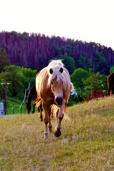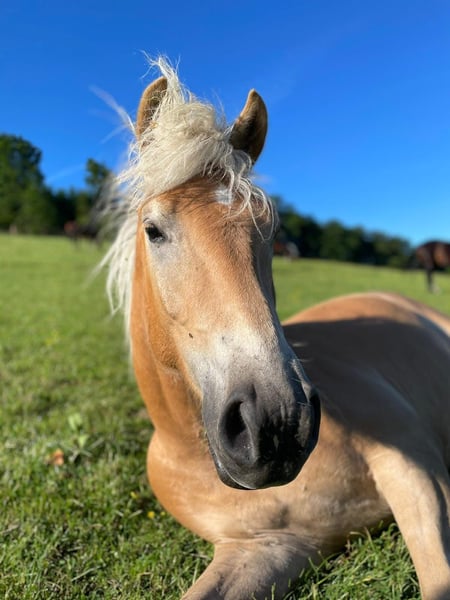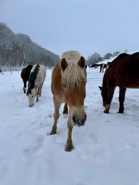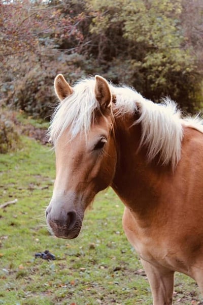 Elara - Haflinger mare - Born on April 24, 2019 - Originally a slaughter horse, came to us at 7 months old - Very people-oriented and affectionate, with typical Haflinger traits - Not suitable for riding - Overweight - Currently living in 59757 Arnsberg - A personal meeting with Elara is a prerequisite Elara came to us at 7 months old and immediately showed herself to be extremely people-oriented and eager to learn. We developed a very close bond, and she would follow me everywhere without a halter. An absolute dream foal. Unfortunately, we increasingly noticed that she became overly dependent on humans, and socialization with other horses was rather challenging, as she was very insecure around her peers. Around her first year, I moved her to a wonderful nursery herd where she was well socialized. She now lives in a large herd with mares of all ages—from foals to retirees. In summer, they spend 24 hours on vast pastures with woods and streams; in winter, they are in an open stable. She was kept there for the first three years (farrier, veterinarian, etc. naturally part of her routine). When she was about four years old, the owner of the stable (Elara’s foster mother) began working with her. She displayed typical Haflinger characteristics: she has her own mind and ideas. We affectionately call her “Pommespanzer” (French: “Croque-Monsieur”). Despite this, they achieved a lot together. Elara was very willing during groundwork and also under saddle, and she handled riding well. She moved confidently and happily in groups, both in the terrain and on the arena. Unfortunately, it quickly became apparent that tight turns caused her discomfort. We had her checked and adjusted her training accordingly. Suddenly, she started to lameness severely, which led us to have her X-rayed. The diagnosis: horn column issue – front right (surgery was not recommended). Due to this diagnosis, she is NO LONGER RIDEABLE. Tight turns cause her difficulties, and rocky ground is problematic for her. In 2023, 2024, and 2025, she suffered from hoof abscesses (sometimes front left, sometimes right), but thanks to her foster mother’s quick and proper care, these healed well. Due to her condition, proper hoof care is essential. Elara has very flat soles. All X-ray images are available, including those of her hoof issues. She does not need special shoes (she is barefoot) and can lead a normal life. Weight reduction would be very beneficial for her and her hooves. Elara manages well with this, and there are no increased costs involved. Elara has her own ideas and tries to enforce them. Respect must be earned, and she responds best to fair, consistent handling. Farrier visits go smoothly, and she has shown herself to be a little star during loading training. We are exclusively looking for a lifetime/end placement! She will be rehomed with a protection contract.