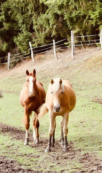 Elara - Haflinger Stute - Geboren am 24.04.2019 - ursprüngliches Schlachtpferd und kam mit 7 Monaten zu uns - sehr menschenbezogen und lieb, mit Haflinger typischen Ideen - nicht reitbar - übergewichtig - lebt derzeit in 59757 Arnsberg - ein persönliches Kennenlernen bei Elara ist Vorraussetzung Elara kam mit 7 Monaten zu uns und zeigte sich extrem menschenbezogen und lernwillig. Wir hatten eine sehr innige Beziehung und sie lief ohne Seil überall mit mir entlang. Ein absolutes Traumfohlen. Doch leider merkten wir immer mehr, dass sie sich nur noch am Menschen orientierte und die Sozialisation mit anderen Pferden eher schwierig war, da sie sehr unsicher mit anderen Pferden war. Mit ca 1 Jahr habe ich sie dann in einen wundervollen Aufzuchtsplatz in eine Stutenherde gebracht, wo sie bestens sozialisiert wurde. Dort lebt sie in einer großen Herde, mit Stuten vom Fohlen bis zum Rentner. Im Sommer stehen sie 24h auf riesigen Wiesen mit Wald und Bachlauf. Im Winter im Offenstall. Dort wurde sie die ersten 3 Jahre stehen gelassen (Hufschmied, Tierarzt, etc. gehörte natürlich trotzdem zum Programm). Mit etwa 4 hat die Stallbesitzerin (Elaras Ziehmama ) dann angefangen mit ihr zu arbeiten. Dort zeigte die sich Halflinger typisch. Sie hat ihren eigenen Kopf und ihre eigenen Ideen. Wir nennen sie liebevoll Pommespanzer. Jedoch haben die beiden unglaublich viel zusammen geschafft. Elara zeigte sich sehr willig bei der Bodenarbeit und auch das Anreiten verlief bestens. Sie ging gut in der Gruppe mit ins Gelände und zeigte sich dort, sowie auf dem Platz flott und freudig. Leider zeigte sich schnell, dass ihr engere Wendungen Probleme bereiten. Wir ließen sie durchchecken und passten das Training an. Plötzlich fing sie jedoch so stark an zu lahmen, dass wir uns dazu entschieden sie Röntgen zu lassen. Wir bekamen die Diagnose: Hornsäule - vorne rechts (von einer OP wurde und abgeraten). Aufgrund der Diagnose ist sie NICHT MEHR REITBAR. Enge Wendungen bereiten ihr Schwierigkeiten. Auch steinige Böden bereiten ihr Probleme. 2023, 2024 und 2025 hatte sie mit Hufgeschwüren (mal vorne links, mal rechts) zu kämpfen, durch die schnelle und richtige Versorgung ihrer Ziehmama sind diese aber immer gut verheilt. Aufgrund der Diagnose ist eine ordentliche Bearbeitung der Hufe wichtig. Elara hat eine sehr flache Sohle. Es liegen alle Röntgenbilder vor und auch von den Hufproblemen gibt es einige Bilder. Sie benötigt keinen besonderen Beschlag (läuft Barhuf) und auch sonst kann sie ein ganz normales Leben führen. Eine Gewichtsreduzierung würde ihr und den Hufen auf jeden Fall sehr gut tun. Elara kommt gut damit zurecht und man hat auch keine erhöhten Kosten! Elara hat ihre eigenen Ideen und versucht diese dann auch durchzusetzen. Man muss sich ihren Respekt erarbeiten und sich durchsetzen können, aber auf eine faire Art und Weise. Schmiedbesuche laufen gut und auch beim Verladetraining hat sie sich als kleine Streberin gezeigt. Wir suchen ausschließlich einen Lebens-/Endplatz! Sie wird mit einem Schutzvertrag abgegeben.