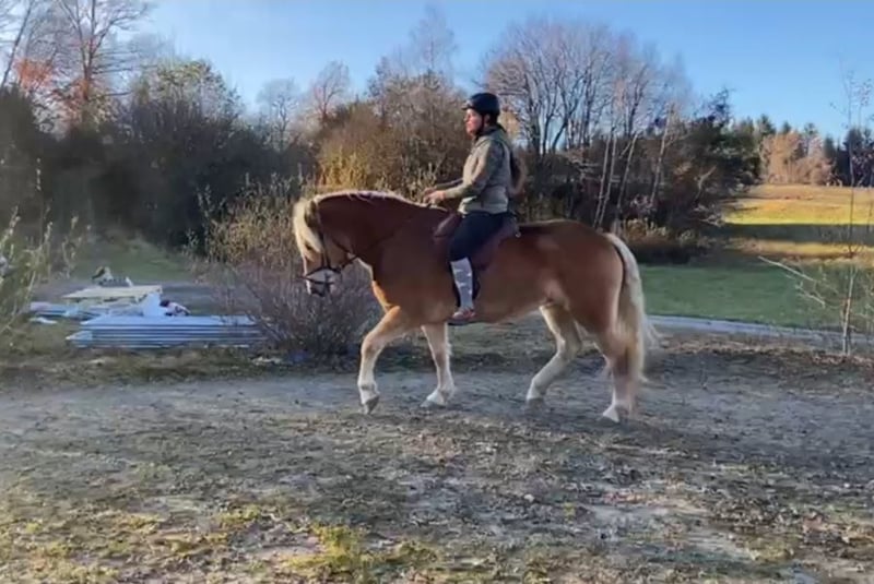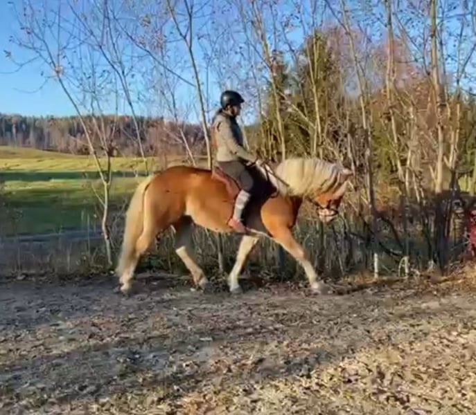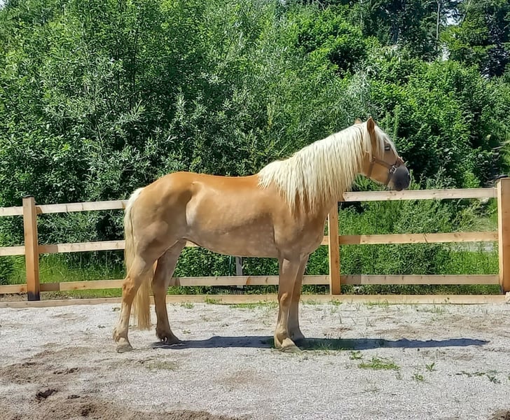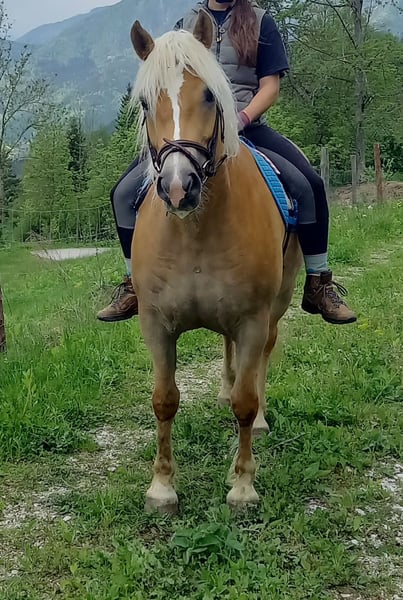 Wir verkaufen unsere 8 jährige Haflingerstute Nava aufgrund von Zeitmangel, an einen Bestplatz. 4 jährig haben wir sie von einer Alm in Slowenien gekauft, dort konnte sie im Herdenverband aufwachsen und war als 2a Zuchtstute eingetragen. Eingeritten bin ich sie dann selbst, wobei sie sehr brav war. Grundgangarten (wenig Galopp), Schenkelweichen und Halten kennt sie. Longe und Bodenarbeit auch. Ich bin sie immer ohne Sattel (mit Physiopad) geritten, da ich nie einen Passenden für sie gekauft habe. Nava ist ein sehr lernwilliges Pferd, das mehrmals die Woche gearbeitet werden will, da ihr sonst einfach langweilig ist. Sie macht nach längeren Pausen zuverlässig einige Freudenhüpfer, ist dabei jedoch nie bösartig. Wenn man sie vor dem Reiten longiert, kann sie ihre überschüssige Energie loswerden und ist dann unterm Reiter auch brav. Vor allem auf Anfänger und Kinder hat sie immer besonders gut aufgepasst, wobei sie im Umgang trotzdem einer konsequenten Führung bedarf, damit sie nicht zu frech wird - deshalb wird sie nicht als Anfängerpferd verkauft. Angst hat sie vor nichts, auch anderen Pferden zeigt sie souverän, dass man nicht nicht fürchten muss, vor Planen, Fahnen, Geräuschen usw. In der Herde ist sie eher ranghoch, ordnet sich aber ein und versteht sich mit Stuten und Wallachen gleichermaßen. Verletzt war sie bei mir nie, auch Hufrehe hatte sie nie. Sie ist extrem trittsicher, auch schmale Wanderwege meistert sie ganz selbstständig. Schmiedefromm. Momentan ist sie zu dick, mit rationierter Fütterung und etwas mehr Bewegung wird das schnell wieder. Durch unseren Familienzuwachs wurde sie länger nicht geritten, sollte aber nach ein paar Mal Longieren kein Problem sein. An der Longe hatte ich sie auch während meiner Schwangerschaft regelmäßig. Auf Wunsch kann ich sie vor dem Verkauf noch einige Male reiten. Dann wäre ein Probereiten im Schritt möglich, allerdings nur bei ernsthaftem Interesse. Wer bis jetzt gelesen hat, kennt meine ganz ehrliche Beschreibung zu unserer Nava. Ich denke wer sich in sie verliebt und Lust hat mit ihr zu arbeiten, mit dem geht sie durch Dick und Dünn. Deshalb wünsche ich mir für sie den passenden Menschen bei dem sie nicht zu kurz kommt! Platz vor Preis! Weitere Infos und Video auf Anfrage