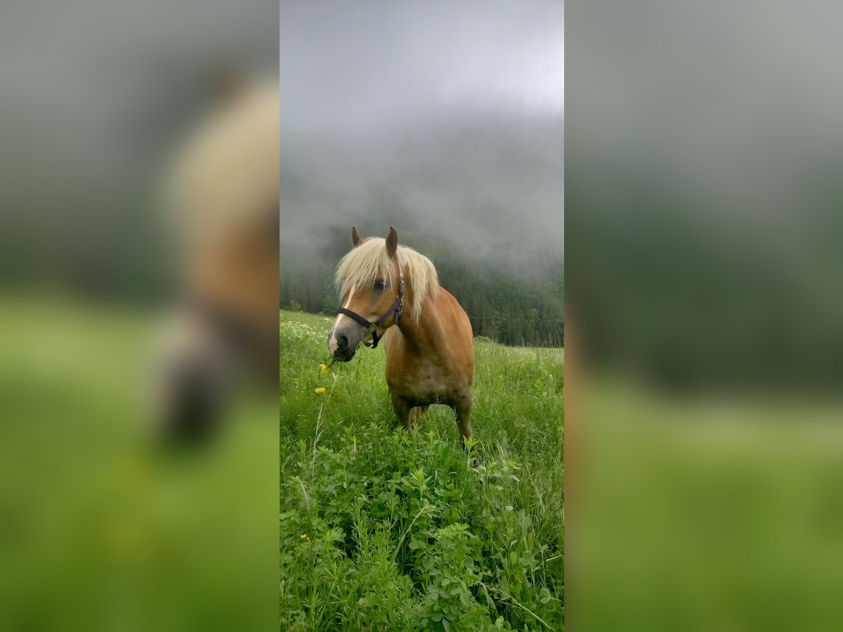 Wir verkaufen unsere 8 jährige Haflingerstute Nava aufgrund von Zeitmangel, an einen Bestplatz. 4 jährig haben wir sie von einer Alm in Slowenien gekauft, dort konnte sie im Herdenverband aufwachsen und war als 2a Zuchtstute eingetragen. Eingeritten bin ich sie dann selbst, wobei sie sehr brav war. Grundgangarten (wenig Galopp), Schenkelweichen und Halten kennt sie. Longe und Bodenarbeit auch. Ich bin sie immer ohne Sattel (mit Physiopad) geritten, da ich nie einen Passenden für sie gekauft habe. Nava ist ein sehr lernwilliges Pferd, das mehrmals die Woche gearbeitet werden will, da ihr sonst einfach langweilig ist. Sie macht nach längeren Pausen zuverlässig einige Freudenhüpfer, ist dabei jedoch nie bösartig. Wenn man sie vor dem Reiten longiert, kann sie ihre überschüssige Energie loswerden und ist dann unterm Reiter auch brav. Vor allem auf Anfänger und Kinder hat sie immer besonders gut aufgepasst, wobei sie im Umgang trotzdem einer konsequenten Führung bedarf, damit sie nicht zu stürmisch ist - deshalb wird sie nicht als Anfängerpferd verkauft. In der Herde ist sie eher ranghoch, ordnet sich aber ein und versteht sich mit Stuten und Wallachen gleichermaßen. Verletzt war sie bei mir nie, auch Hufrehe hatte sie nie. Sie ist extrem trittsicher, auch schmale Wanderwege meistert sie ganz selbstständig. Schmiedefromm. Momentan ist sie zu dick, mit rationierter Fütterung und etwas mehr Bewegung wird das schnell wieder. Durch unseren Familienzuwachs wurde sie länger nicht geritten, sollte aber nach ein paar Mal Longieren kein Problem sein. An der Longe hatte ich sie auch während meiner Schwangerschaft regelmäßig. Auf Wunsch kann ich sie vor dem Verkauf noch einige Male reiten. Dann wäre ein Probereiten im Schritt möglich, allerdings nur bei ernsthaftem Interesse. Wer bis jetzt gelesen hat, kennt meine ganz ehrliche Beschreibung zu unserer Nava. Ich denke wer sich in sie verliebt und Lust hat mit ihr zu arbeiten, mit dem geht sie durch Dick und Dünn. Deshalb wünsche ich mir für sie den passenden Menschen bei dem sie nicht zu kurz kommt! Weitere Infos und Video auf Anfrage