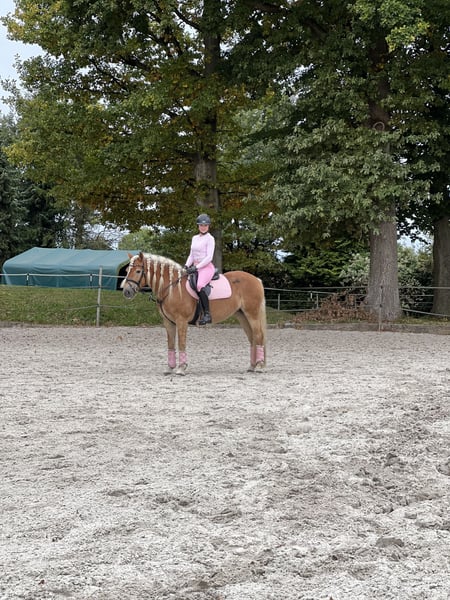 Manchmal gibt es Veränderungen im Leben die man leider nicht beeinflussen kann. Somit muss ich mich mit großen Bedauern und schweren Herzens von meiner Haflinger Stute trennen. Wegen Reitsport Aufgabe. Hallo ich bin eine Hübsche Haflinger Stute 7 Jahre jung, mit Charakter, Charme und guter Abstammung. Bei der FN bin ich registriert, da ich bei mein Züchter eine leistungsstuten Prüfung absolviert habe. Ich bin direkt vom Züchter zu meiner jetzigen Besitzerin gekommen. Ich bin sehr schlau und lerne schnell. Ich bin ziemlich vielseitig und gehe ohne Probleme alleine ins Gelände mit meiner Besitzerin ob spazieren oder ausreiten, wenn das Vertrauen da ist. Dressur gefällt mir auch, aber ich habe mehr Spaß an Stangenarbeit, da muss ich aber noch weiter gefördert werden. Da ich den typischen Haflinger Dickkopf habe, benötige ich eine konsequente aber liebevolle Führungsperson die mir auch Sicherheit vermitteln kann, sonnst übernehme ich gerne die Führung selbst. Denn ich teste auch gerne wie weit ich gehen kann. Somit bin ich nicht für Anfänger geeignet. Meine Haltung liegt meiner Besitzerin sehr am Herzen, sie möchte nicht das ich 24/7 in einer Box stehe oder ich keinen keinen Kontakt zu Freunden habe. Daher sollte ich am Tag draußen in einer Herde stehen können, nachts in der Box bin ich gewohnt. Da ich aber sehr leichtfuttrig bin, benötige ich kein 24/7 Heu und nur stundenweise Wiese. Ich bin gesund und habe keine Einschränkungen eine aktuelle AKU kann gerne gemacht werden (auf eigene Kosten) Falls du Interesse hast mich kennenzulernen schreib einfach meiner Besitzerin mit einer kurzen Vorstellung von dir, sie kann dir alles über mich erzählen und ein Termin vereinbaren. Kein Verkauf an Reitschulen da sie dafür nicht geeignet ist. Sie benötigt eine feste Bezugsperson. Probereiten wird mit einer Gebühr von 25€ berechnet um Reittourismus zu vermeiden. Dies wird beim Kauf verrechnet. Ihr passendes Zubehör kann dazu erworben werden.