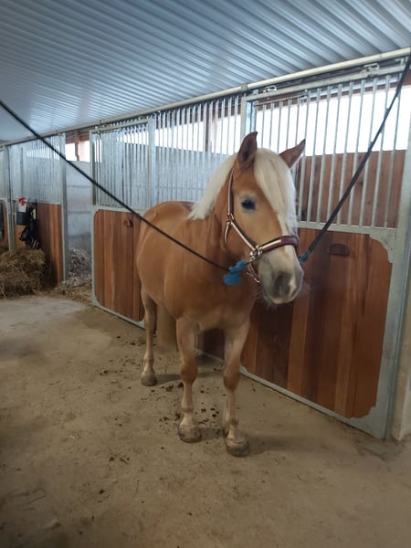 Sie ist eine brave Haflingerstute und hört auf den Namen Cassy, leider kein Gewichtsträger (bis 75kg). Sie ist 9 Jahre Alt und braucht noch eine konsequente Hand, daher eher nicht für Anfänger geeignet. Ich reite Sie ausschließlich Dressur und Freizeitmäßig. Sie hatte vorher 4 Jahre Eisen wurde vor ein paar Monaten umgestellt auf Barhuf. Steht jetzt bis mitte Ende Mai noch auf einem befestigten Padock und kommt danach stundenweise auf die Weide.