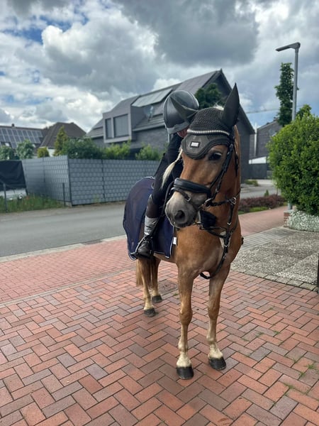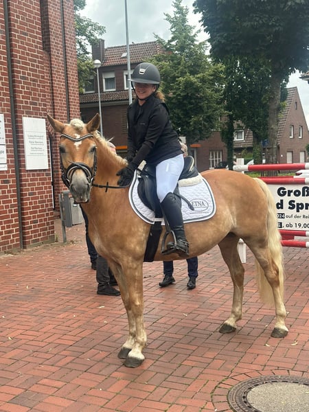 Schweren Herzens verkaufen wir unsere Edelbluthaflinger Stute. Zurzeit ist sie 9 Jahre alt und hat einen Stockmass von 1,47m. Sie ist ein ruhiges doch steht’s motiviertes Pony, sie akzeptiert Fehler und zeigt im Umgang sowie beim reiten keine Anzeichen von Ungehorsam, von daher ist sie auch ein gutes Anfänger/Wiedereinsteiger Pferd. Sie hat schon eine Auszeichnung als Verbandprämien Stute erhalten und durfte auch schon ein Fohlen zur Welt bringen. Sie ist Geländesicher sowie verladefromm. Wir sind öfter mal mit ihr woanders hingefahren und sind auch schon in fremden Geländen geritten, dort zeigte sie sich ebenfalls unerschrocken und brav. Desweiteren hat sie auch schon Tunier Erfahrungen, auf denen sie immer entspannt unterwegs war. Sie ist keine großartige springmaus. Kleine Sprünge macht sie allerdings gerne mal mit. Sie macht allen Quatsch an Schreck Training locker und entspannt mit. Auch ohne Sattel reiten ist kein Thema. Ein tiefenentspanntes ruighes Pony. Sie hat alle Impfungen und ist sehr gepflegt Sie läuft Barhuf und wurde regelmäßig den Hufschmied vorgestellt Wir wünschen uns für sie ein tolles Zuhause mit Menschen die sie lieben und verpflegen und wo sie einfach glücklich sein kann. Unsere Tochter hat sie direkt vom Züchter und begleitet sie mittlerweile seit 5 Jahren. Da unsere Tochter aber eine Liebe für das springen entwickelt hat, mussten wir leider diese Entscheidung treffen unsere Amy zum Kauf anzubieten. Zwei Pferde ist leider eins zu viel. Wir sind eine loyale Familie die ihr Pony in eine liebevolle Familie bringen möchte. Vielleicht gibt es ja ein Mädchen oder eine Dame , welches genau wie unsere Tochter vor 5 Jahren, ein Pferd zum juckeln und lieb haben sucht und sie viele viele Jahre begleiten möchte. Bei Interesse und Fragen meldet euch gerne hier oder unter folgenden WhatsApp Nummer: 01751242737