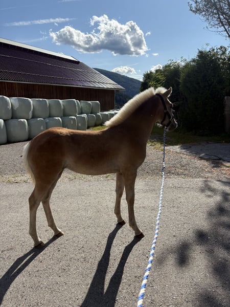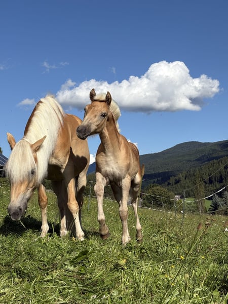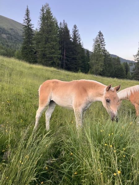 Wir suchen ein liebevolles neues Zuhause für unsere bezaubernde Haflinger-Stute. Amadea Geboren am 1. Mai 2025 Vater: Sommerhit Mutter: StPrSt. Amira (7,91) nach Novill Amadea ist ein korrektes Fohlen welcher auch mit einer guten Bewegung ausgestattet ist. Sie überzeugt nicht nur durch ihre gute Abstammung, sondern auch durch ihren Charakter in den man sich nur verlieben kann . Neugierig flitzte sie über die Alm mit weiteren Fohlen. Neben dem lernen des Fohlen-ABCs, Welterkunden und alles mögliche in den Mund nehmen, ist gekrault werden ihre Lieblingsbeschäftigung. Amadea ist ein braves und lernwilliges Fohlen, Hufschmied oder Spazieren gehen am Strick mit ihrer Mama, ist kein Problem. Ab November würden wir sie Absetzen und in ein neues 5⭐️ Zuhause übergeben. Gerne könnte sie auch länger bei ihrer Mutter bleiben. Gerne kann sie besucht werden ( würde sich über eine Krauleinheit freuen) Kontakt gerne Telefonisch oder per WhatsApp! +43 650 3621254