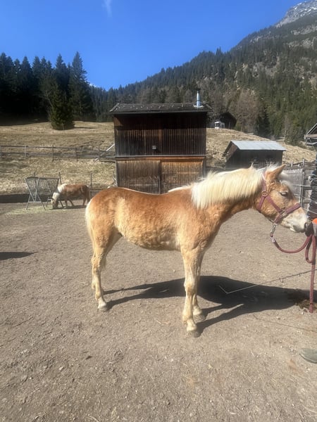 Sehr umgängliches, sportliches Hengstfohlen, kennt Hufschmied, Hängerfahren, ist geimpft und kennt das Fohlen ABC. Wächst im Herdenverband auf. Ist täglich auf der Koppel. Standort: mittleres Lechtal