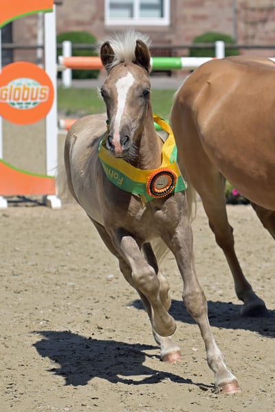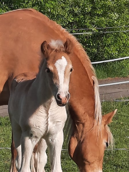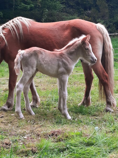 „Nazim vom Eulental“ (geb. 06.05.25) unser kleiner Showmaker sucht seinen neuen Wirkungskreis / neuen Menschen. Mit seinem Lausbuben-Gesicht wickelt er alle um den Finger, aber gepaart mit gutem Exterieur und 3 überragenden Grundgangarten konnte er sowohl die Richter auf der regionalen Fohlenschau (Siegerfohlen über alle Ponyrassen) als auch beim Fohlenchampionat RPS im Landgestüt Zweibrücken überzeugen, wo er souverän die Klasse der Haflingerfohlen gewann. Dieser kleine Mann (Endstockmaß ca. 1,48 m) besitzt ein phänomenales Körpergefühl, seine tolle Balance war vom 1. Tag ersichtlich, was ihn für alle Sparten des Reit- oder Fahrsports interessant macht. Aufgrund seiner Qualität zur Hengstaufzucht geeignet, aber auch als Freund fürs Leben gerne in den gehobenen Freizeitbereich. Zudem hat Nazim vor nichts, aber auch gar nichts Angst. Absolut selbstbewusst läuft er über Schachtdeckel, Entwässerungsrinnen, an Baustellenbarken vorbei (auch wenn er Diese zum 1. Mal sieht), weicht keinen Millimeter vor bellenden Hunden etc. Er kennt durchs Dorf laufen, Hängerfahren, Hufschmied, dabei ist er super leicht im Handling. So einen relaxten Jährling hatten wir noch nie. Allerdings macht ihn sein großes Selbstbewusstsein und seine Intelligenz auch anspruchsvoll in der Kommunikation, (Jung-) Pferdeerfahrung sollte vorhanden sein. Vater: Pr.Anw. Ninoxx BE (v. Noakley BE a.d. EliteSt Hyden BE v. Weritas) Mutter: StPrSt Aziza vom Eulental (v. BPr Arino – liz. Afloyd), selbst Eliteschausiegerin, viele Generationen nur Prämienstuten, aus der Linie stammt der gekörte Hengst „Amarin vom Eulental", die Eliteschausiegerinnen RLP „Ayana vom Eulental“ und „Aruna vom Eulental“.