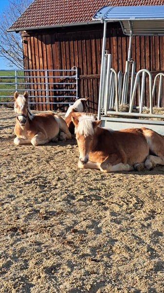 Unser Hengste kommen aus Südtirol und sind original Haflinger, rein gezogen, mit original Haflinger Equidenpass inkl. Stammbaum und Foto. Sie besitzen einen Haflinger Brand, erreichen ca +- 154 cm Stm. Und ca +- 150cm Stm. Sie durften ihre ersten 6 Monate auf der Alm verbringen. Sie werden im März und Mai 1 Jahr alt, sind neugierig und lieben es Aufmerksamkeit und Streicheleinheiten zu bekommen soviel nur geht. Sie leben in einer kleinen Hengstherde, geben schon brav die Hufe, lassen sich putzen und sind Halfterführig. Impfungen und Schmied waren kein Problem. Nun suchen sie ihren neuen Besitzer der mit ihnen ganz viel Zeit verbringt und zusammen wächst. Das beste Alter um eine Beziehung aufzubauen. Bei Ernst gemeinten Fragen gern melden. Preis je Fohlen