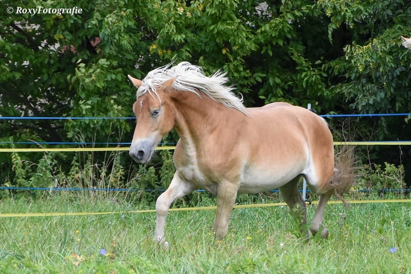 Verkaufe bei passendem Platz einen tollen Haflinger Jährlingshengst. Er stammt ab vom Hengst Neuglanz, der Sieger seiner Leistungsprüfung mit 8,54! wurde. Seine Mutter ist Staatsprämienstute, PrSt**, leistungsgeprüft und war zur Bundesschau 1d prämiert. Er wurde im Juni 2024 geboren, konnte seine Fohlenschau gewinnen und sich zum Championat im Moritzburg an vierter Stelle platzieren. Die Mutterstute ist super zuverlässig, nervenstark, mit tollen Bewegungen ausgestattet und verfügt über ein gutes und kräftiges Fundament sowie sehr raumgreifende Grundgangarten. Sie wird geritten (geht E/A auf dem Turnier), läuft zur Fuchsjagd mit und ist ein und zweispännig gefahren. Sie ist das Pferd für alle Fälle, macht alles mit, geht bei Martinsumzügen vorweg und ist einfach nervenstark und gleichzeitig sehr arbeitswillig. In dieser ersten Saison im Fahrsport bei jedem Start platziert gewesen (A-Niveau). Die letzten 4 Bilder zeigen die Mutter. Novelio zeigt bereits jetzt das sehr ausgeglichene Temperament seiner Mutter, kann sich toll bewegen und ist modern aber gleichzeitig noch kräftig im Fundament, sein Stockmaß wird sicher um die 1,50m liegen (eher größer). Mutter und Schwester (3 jährig aktuell bereits 1,50m groß) können vor Ort besichtigt werden. Er beherrscht das Fohlen-ABC und hat den Sommer in einer altersgemischten Hengstherde verbracht und ist nun mit der Herde ins Winterquartier gezogen. Er ist geimpft, entwurmt, steht artig beim Hufschmied und kennt das Anhänger fahren. Er bringt alle Voraussetzungen mit, um mal ein ganz tolles Reit- und Fahrpferd sowohl im Freizeitbereich als auch im turniersportlichen Bereich zu werden. Auch als späteres Kinderpferd kann ich ihn mir aufgrund des angenehmen Temperaments sehr gut vorstellen. Eine Besichtigung ist nach Absprache jederzeit möglich. Kann auch hier noch kastriert werden. Er könnte auch zur Aufzucht weiterhin hier stehen bleiben, auch anreiten oder einfahren wäre dann später hier möglich. Ggf. wäre auch ein Transport ins neue Zuhause im Umkreis möglich.