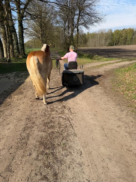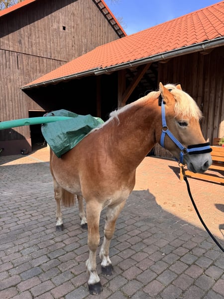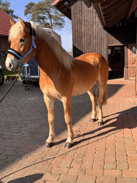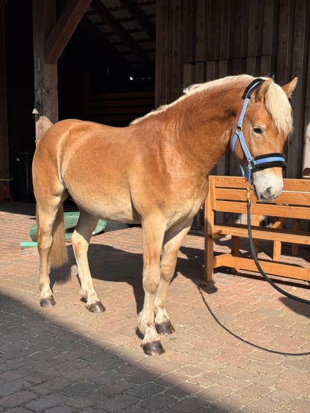 Zum Verkauf steht ein hübscher Haflinger Hengst, geboren im April 2024. Er wächst bei uns auf dem Hof auf und ist entsprechend gut geprägt. Der junge Mann ist absolut unkompliziert im Umgang und kennt bereits „jeden Quatsch“ (Laubpüster, Kantenschneider, Aufsitzrasenmäher, Pferd waschen – alles kein Problem), was ihn zu einem besonders sicheren und nervenstarken Partner macht. Trotz seines jungen Alters zeigt er sich sehr abgeklärt und zuverlässig. Ob Autos, Fahrradfahrer oder andere Umweltreize – er bleibt stets gelassen und zeigt sich als echtes Verlasspferd. Er geht alleine ins Gelände spazieren. Er ist: - herdenverträglich - problemlos im Umgang - kennt den täglichen Kontakt mit Menschen und Hunden - brav und gelassen in neuen Situationen - rangniedrig Abstammung: - Vater: Seeglanz-Simba (148 cm) - Mutter: Hüterin des Feuers (143 cm) Aktuell hat er ein Stockmaß von ca. 142 cm Er ist regelmäßig entwurmt und geimpft. Selbstverständlich besitzt er einen Equidenpass, eine Eigentumsurkunde und ist gechipt. Ein tolles Nachwuchspferd für alle, die Wert auf ein sicheres, nervenstarkes und zuverlässiges Pferd legen. Ox-Anteil 0,000% (Araber-Blut) Bei ernsthaftem Interesse freuen wir uns über eine Nachricht. Verkauf wegen Reitsportaufgabe, kein Notverkauf. 015123065065