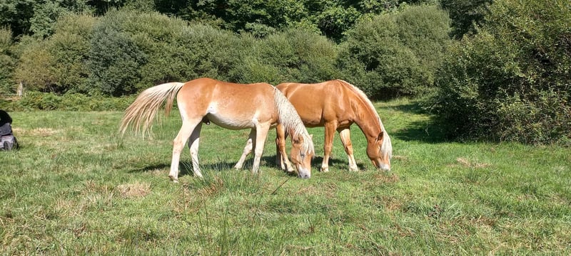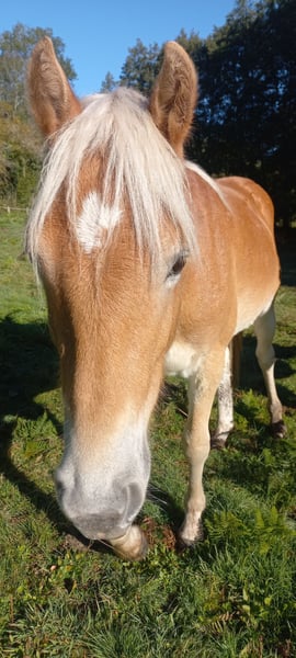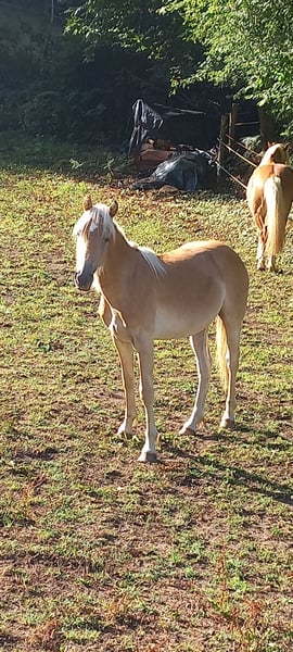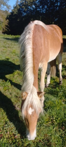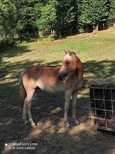 ✨ For sale: Haflinger stallion Mondain de L’Espaud (in foal or without foal) ✨ Name: Mondain de L’Espaud Breed: Haflinger (1.40 m+) Year of Birth: April 13, 2024 (1.5 years) Color: Chestnut Pedigree: Sire Morgenstern / Liz 5567/T – Dam Sonnenstrahl - dam's sire Sevruga Liz 410/T Mondain is a beautiful, intelligent stallion foal with a sporty, large Haflinger build. 👉 Character & Potential Mondain is sensitive, eager to learn, and loyal when he trusts you. He requires an owner who has experience with (holistic) ethology or horsemanship. With the right guidance, he will grow into a cheerful and loyal partner. Without that approach, he may withdraw and become insecure, potentially choosing to be aggressive. 👉 Training & Disciplines Started groundwork, leads well with a halter and on a lead rope. Grooming. Versatile use: Breeding, recreation, dressage, jumping, driving work, TREC, or Equifeel. 👉 Health & Living Environment Up to date with vaccinations, deworming. Lives outside year-round in herds, very social and well acclimatized. 💶 Price Mondain de L’Espaud € 2950,- including VAT. 📍 Available for viewing in Haute-Vienne (87), France. Accommodation available – these costs will be waived upon purchase. With a heavy heart, we are selling him due to lack of time and already having one stallion. MONDAIN will only go to a 5-star home where he will receive the right attention and guidance. ℹ️ We currently have five more Haflingers for sale, with and without papers (ages 1 to 5 years).