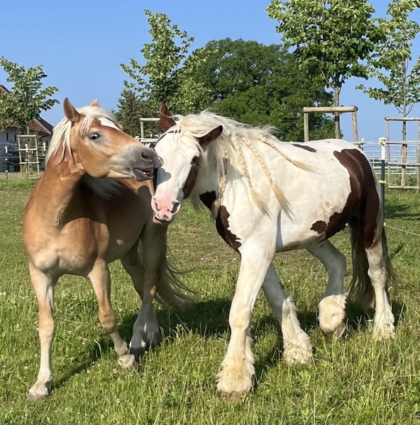 Mit schwerem Herzen verkaufen wir unseren selbstbewussten, liebevollen 2,5-jährigen Berti. Er wurde bei uns zu Hause geboren und durfte von Anfang an in einem stabilen Familienverband aufwachsen – lange Zeit gemeinsam mit seiner Mutter und seiner Halbschwester. Diese ruhige und soziale Kindheit hat ihn zu dem ausgeglichenen, menschenbezogenen Jungpferd gemacht, das er heute ist. Später wechselte er in eine reine Bubengruppe, wo er sich altersgerecht austoben und weiterentwickeln konnte. Berti ist das Ebenbild seines Vaters Barikal (auf den letzten drei Fotos zu sehen): eine seltene B-Linie, kräftig, kompakt, mit starken Hufen wie ein Noriker – ein Pferd vom alten Schlag. Diese Ursprünglichkeit trägt auch Berti in sich. Gleichzeitig bringt er durch seinen Ox-Anteil von 4,69 % eine angenehme Sportlichkeit mit und gehört daher keinesfalls zu den langsamen Haflingern. Er vereint Kraft, Ausdauer und eine schöne, natürliche Bewegungsfreude. Seine Mutter stammt aus der sportlichen Linie und bringt zusätzlich Größe und Eleganz mit. Dadurch wird Berti voraussichtlich ein Endstockmaß zwischen 1,46 m und 1,51 m erreichen – ideal für alle, die einen kräftigen, aber dennoch gut nutzbaren Freizeitpartner suchen. Aufgrund seines Ox-Anteils besitzt Berti einen weißen Pass, da er in Österreich offiziell nicht als Reinzucht Haflinger gilt. Für uns ist er dennoch genau das, was ein Haflinger ausmachen sollte: ehrlich, robust, leistungsbereit und mit einem wunderbaren Charakter. Berti wird einmal ein verlässlicher Partner fürs Leben – für Wanderreiten, Kutsche fahren, Arbeiten im Wald oder einfach für viele gemeinsame Stunden. Ein Pferd, das mit seinem Menschen durch dick und dünn geht. Aktuell steht Berti in liebevoller Ausbildung bei Florian Oberparleiter (www.florian-oberparleiter), wo er eine ruhige, sanfte und pferdegerechte Ausbildung genießen darf. Bei ehrlichem Interesse und weiteren Fragen stehe ich sehr gerne zur Verfügung – natürlich auch über WhatsApp. Berti sucht einen Menschen, der seine Qualität, seine Herkunft und sein großes Herz zu schätzen weiß.