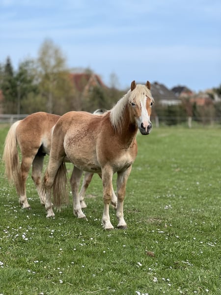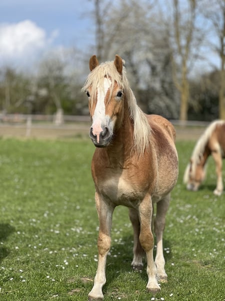 For sale is our 3.5-year-old Haflinger mare, Ally, bred and raised on our own farm. Born on June 3, 2022. Ally is an outgoing, confident Haflinger mare. She grew up in a small herd of young horses, and during the summer, our foals are on pasture 24/7. She has good basic gaits, is long-legged, and currently measures approximately 1.50/1.51 meters at the withers, with a solid foundation suitable for her size. A few centimeters may still develop as she matures. Due to her age, she is naturally not suitable as a beginner or children's horse. Since she was born relatively late in the year, she was able to enjoy the summer pasture last year. Now, she is ready to learn new things. We are looking for someone who will continue her professional training, properly challenge and support her, enjoy working with her, and give her a happy pony life. Starting June 1st, she will begin professional riding lessons, and the price will increase by €1,000 per month thereafter. Subject to prior sale. Viewings are possible daily by appointment. An ultrasound can be performed by your veterinarian if desired.