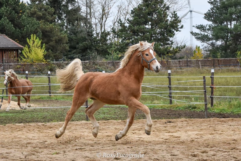 Verkaufe charmanten Haflinger Junghengst / Wallach Geboren in 04/2023 wird er im Frühjahr nun 3 jährig und ist bereit die Welt zu entdecken. Er stammt ab vom Bundesprämienhengst, Körungssieger und HLP-Sieger Bugatti, der aktuell Landbeschäler im Landgestüt Moritzburg ist und 2023 Bronze zum Bundesfahrponychampionat holen konnte. Seine Mutter ist eine Verbandsprämienstute vom 3-fachen Weltsiegerhengst Liz. Abendstern x Winterstein. Balios vereint damit beste tiroler Genetik der Mutter über Bugatti mit dem Vererber Bellisimo sowie dem herausragenden Mutterstamm des Bugatti. Als Fohlen siegte er zu seiner Fohlenschau, wurde 5.ter zum Championat in Moritzburg und Reservesieger der Hengstfohlen zum Haflingertag in Brandenburg-Anhalt. Er ist bereits sehr gut entwickelt und misst aktuell bereits mind. 1,51 m (eher mehr) und wächst natürlich noch. Er ist selbstverständlich artgerecht in einer altersgemischten Junghengstherde aufgewachsen. Balios kennt die Führmaschine, das Longieren, Freilaufen in der Halle sowie Freispringen. Er wurde zur Körung vorgestellt und ist daher aktuell vorn beschlagen. Hufschmied und Verladen sowie die normalen Umgangsformen kennt er daher selbstverständlich. Balios ist ein wirklich modern aufgemacht Haflingerhengst im sportlichen Typ. Er sucht ein Zuhause in dem er weiter ausgebildet, gefordert und gefördert wird. Eher kein Pferd um nur 2x die Woche zu arbeiten, er braucht eine Aufgabe. Er lernt sehr schnell und gibt sich immer große Mühe. Ich sehe ihn eher bei einem Freizeitreiter/ -fahrer mit Turnierambitionen. Balios ist ein Pferd mit einer unglaublichen Ausstrahlung und ein wahrer Hingucker, er besitzt 3 gute Grundgangarten und ist jetzt angearbeitet und bereit seine Karriere als Reit- und/oder Fahrpferd zu starten. Wer einen zuverlässigen Partner für vorrangig den sportlichen Bereich sucht, wird bei ihm nicht enttäuscht werden. Er wird zeitnah kastriert und dann startet seine Ausbildung hier so langsam. Mit steigendem Ausbildungsstand steigt auch der Preis. Momentan noch ein absoluter Rohdiamant zum selbst schleifen/ ausbilden. Transport ggf. möglich.