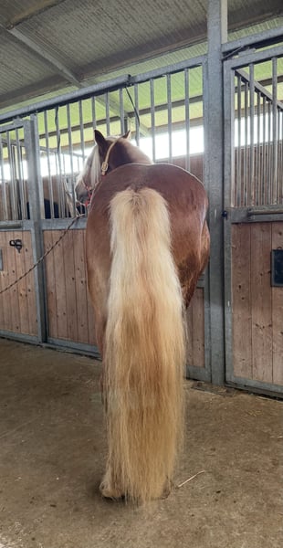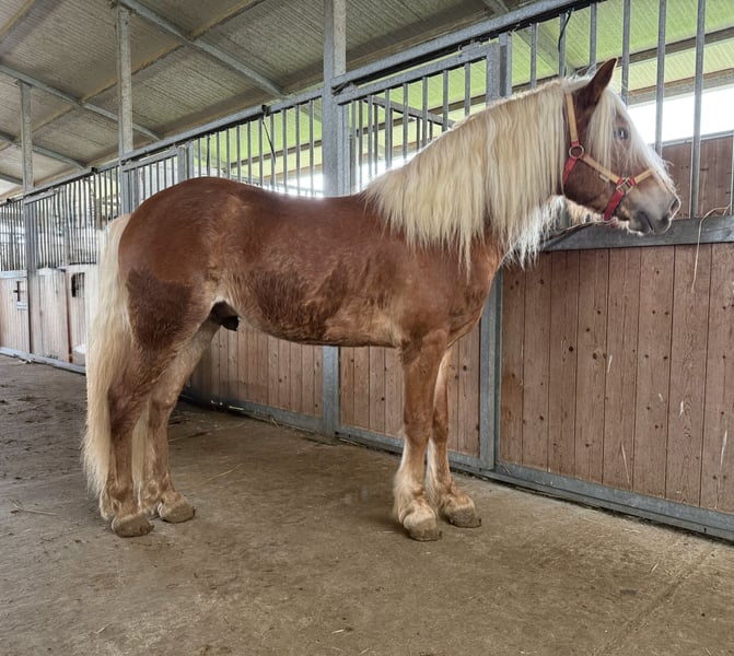 Stupendo cavallo intero di 4 anni. Carattere equilibrato, domato ma con necessità di essere ripreso. Ottima genealogia sia da parte del padre che della madre, proveniente da nomi come Stornello Toscano, Storm, Steinadler, Madonna, Zendalino. Nomi che hanno segnato la storia della razza Halfinger. Cavallo dal manto stupendo e dal carattere docile ma con l'impulsività di un giovane stallone. Si allegano le foto ma non rendono come dal vivo.