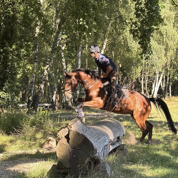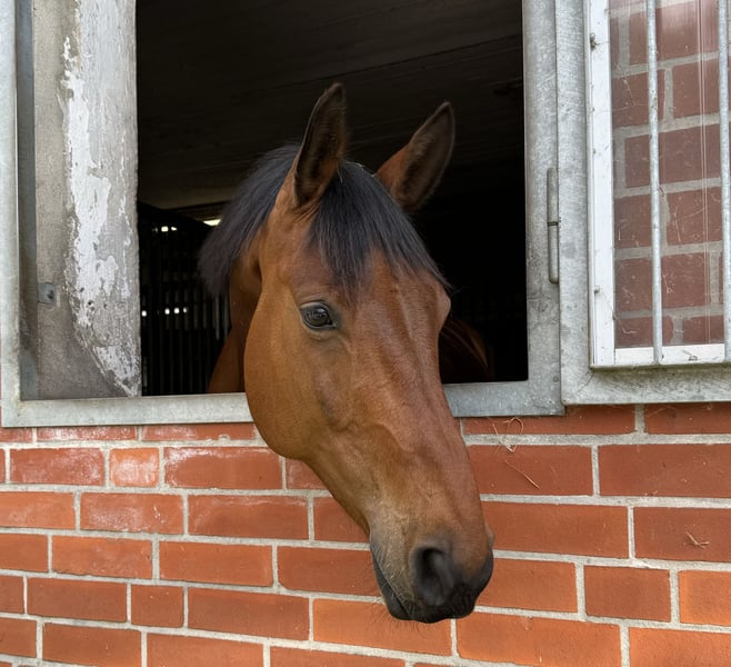 Schweren Herzens suchen wir für unseren liebenswerten, bildhübschen Hannoveraner-Wallach „Contino“ ein liebevolles, neues Zuhause. Im täglichen Umgang ist er ein wahrer Schatz. Er ist lieb, unkompliziert, freundlich und dem Menschen sehr zugewandt. Er genießt es, wenn man sich mit ihm beschäftigt und auch Schmied- und Tierarztbesuche sind absolut unproblematisch. Unter dem Sattel zeigt Contino sich stets brav, aufmerksam und motiviert, selbst bei noch unerfahrenem Reiter. Er verfügt über 3 schöne GGA und steht dabei mit positiver Anlehnung fein an den Hilfen. Auch am Sprung zeigt er sich sowohl in der Halle als auch über kleinere Geländehindernisse talentiert und geschickt. (In der Vergangenheit war er mit seiner Vorbesitzerin im Springen A** platziert). Hier verfügt er sicherlich noch über weiteres Potential, dessen Entfaltung in der Zeit bei uns, aufgrund der Bedürfnisse seiner jetzigen, jungen noch unerfahrenen Reiterin, nicht im Fokus seines Trainings stand. Da er im Gelände eine hohe Aufmerksamkeit zeigt, braucht er hier einen souveränen, erfahrenen Reiter, an dem er sich orientieren kann. Leider stellt dies für seine jetzige Reiterin eine zu große Herausforderung dar. Wir wünschen uns für ihn daher ein Zuhause bei einem einfühlsamen Menschen mit Pferdeerfahrung, der ihm die nötige Sicherheit vermitteln kann, die er braucht, um seine positiven Eigenschaften, sein Potential und wundervolles, herzerwärmendes Wesen voll und ganz entfalten und zeigen zu können. Contino ist kerngesund. Es liegt eine AKU mit 28 Röntgenbildern (incl. HWS) von 2024 mit tadellosem Ergebnis vor. Er kennt Boxenhaltung mit täglichem Weidegang, aber auch Offenstallhaltung und ist sehr herdenverträglich. Bei Interesse oder für weitere Informationen freuen wir uns auf Ihre Nachricht!