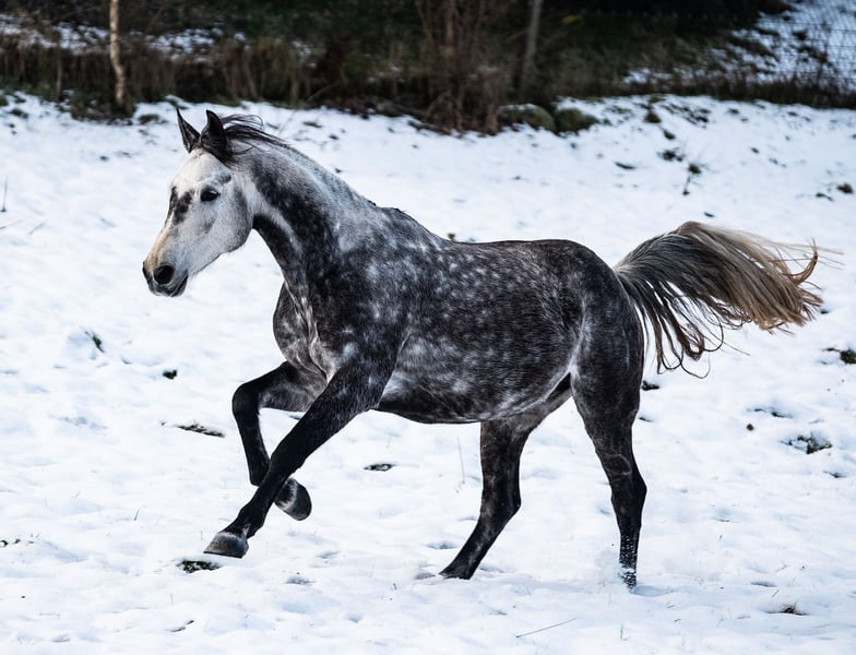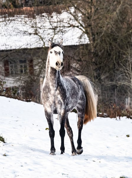 Crumberry, 2016, gelding, 16.1 hh L.B. Crumble x Quality, registered Hanoverian « Beeri » was imported to me from Germany five years ago. Since arriving in Switzerland, he has had the opportunity to learn everything necessary to become a versatile leisure horse. He has three comfortable and expressive gaits, and is familiar with both indoor arenas and outdoor terrain. In the field, he is fearless whether alone or in company (I do not have more horses). He often accompanies me as a lead horse and moves quietly in all gaits, like an invisible shadow beside me. He is familiar with lateral movements in walk and trot and has been introduced to working equitation obstacles. He knows horse agility, extreme trail, various ground work obstacles, free jumping, trail obstacles at the hand, and much more. I lack the courage for jumping—not him. He is very willing to work but does not respond well to rigid pressure (stopping at X and then starting after the bell does not work for him). He needs biomechanically correct work (tensegral, classical fine dressage, or similar) – I am happy to provide more detailed information upon request. Beeri is a treasure with the hoof trimmer and veterinarian, shows no bad habits in handling, and is easy to load in seconds. He ranks high in the group but is playful. I am looking for a new home for Beeri because he does not receive enough time and attention with me. I wish for him a home with lots of riding, relaxed and versatile groundwork, and ideally horse companions. He is a one-person horse and can be transferred with various high-quality equipment. Place before price, further information gladly via private message.