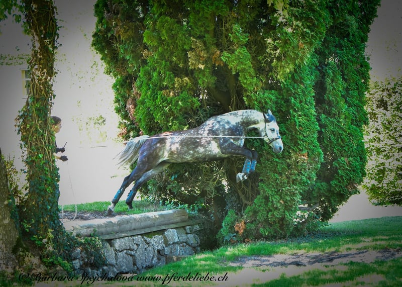 Crumberry, 2016, gelding, 1.65 m L.B. Crumble x Quality, registered Hanoverian "Beeri" was imported to me from Germany five years ago. Since arriving in Switzerland, he has had the opportunity to learn everything necessary to become a versatile leisure horse. He has three comfortable and expressive basic gaits, is familiar with both indoor arena and outdoor riding. In the terrain, he is fearless both alone and in company (I do not have more horses). He often accompanies me as a lead horse and moves quietly in all gaits, like an invisible shadow beside me. He is familiar with lateral movements in walk and trot and has experienced working equitation obstacles. He knows horse agility, extreme trail, various ground work obstacles, free jumping, terrain jumps while lunging, and much more. He is eager to work, but does not tolerate stiff pressure (stopping at X and then starting after the bell does not work for him). He requires biomechanically correct work (tensegral, classical fine dressage, or similar) – I am happy to provide more detailed information upon request. Beeri is a treasure for the farrier and veterinarian, shows no bad manners in handling, and loads into the trailer in seconds. He is dominant in the herd but playful. I am looking for a new home for Beeri because he does not receive enough time and attention with me. I wish for him a home with lots of riding outings, relaxed and versatile groundwork, and ideally horsey companions. He is a one-person horse and can be taken over with various high-quality equipment. Priority goes to the well-being of the horse over price. Further information gladly available via private message.