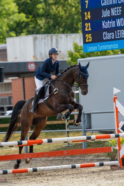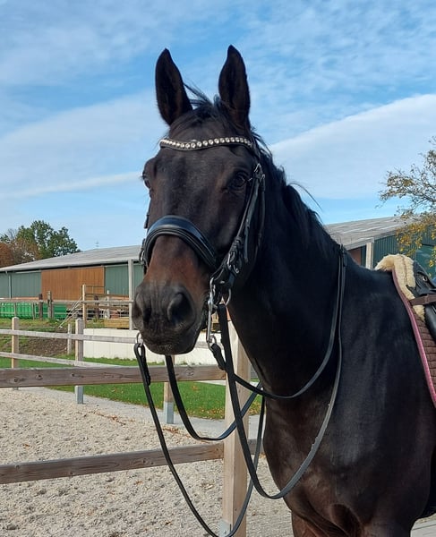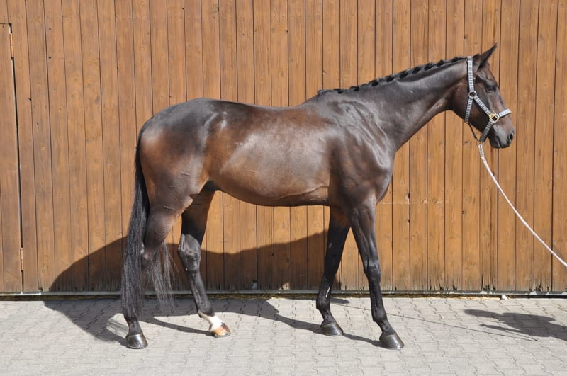 Zum Verkauf steht dieser brave und elegante Hannoveraner Wallach, geboren im Jahr 2015. Finley besticht durch sein typvolles Auftreten und seine hervorragenden Bewegungen, insbesondere sein Schritt und seine raumgreifende Galoppade sind hervorzuheben. Mit seiner dunklen Farbe und einem Stockmaß von 174 cm ist er ein echter Hingucker, ob auf dem Turnierplatz oder im Gelände. Finley ist sofort einsatzbereit für Vielseitigkeitsprüfungen oder einfach als toller Freizeitpartner zum Ausreiten und Spaß haben. Finley ist momentan in der Dressur auf sicherem A-Niveau ausgebildet und beherrscht den Großteil der L-Lektionen. Es wurde mit weiteren Lektionen der Klassen L/M angefangen (Seitengänge, fliegende Wechsel). Neben der Dressur wird Finley aktuell auch im Springen gefördert (bisher bis ca. 95cm). Im Gelände zeigt er sich absolut zuverlässig. Er springt alle Arten von Hindernissen - Gräben, Hecken, Wasser, Häuser, Tonnen - ohne Zögern oder Verweigerung. Immer kontrollierbar, aber mit genug Go und seiner raumgreifenden Galoppade, um locker in der Zeit zu bleiben. Seine aktuellen Platzierungen in der Vielseitigkeit und Hunterprüfung unterstreichen das. Dieser tolle Wallach ist brav, hat entsprechend seiner Abstammung (Finest × Second Set xx) genügend Go und ist sehr fein zu reiten. Er lässt sich problemlos alleine Verladen, kennt Auswärtstrainings, Lehrgänge und Turnier. Finley zeigt sich in neuen Situationen gelassen und neugierig, auch von unerfahrenen Personen problemlos zu händeln. Finley ist 4-jährig bereits Dressurpferde A gelaufen und erhielt eine Wertnote von 7,4. Sein Bruder Fred Feuerstein ist bereits bis Dressurprüfungen der Klasse M** siegreich. Aktuelle Röntgenbilder vorhanden. Bei Interesse können Sie sich gerne telefonisch bei mir melden und ich gebe Ihnen weitere Informationen oder wir vereinbaren einen Termin. Standort Hilden