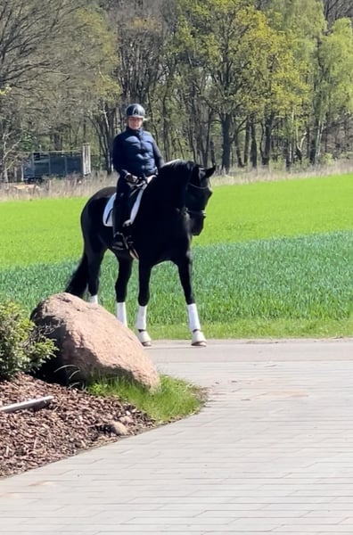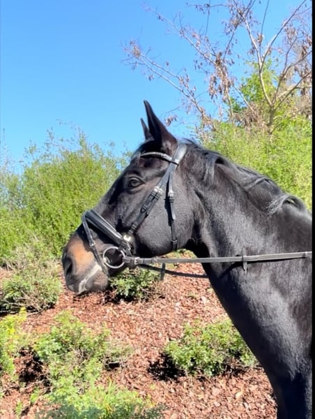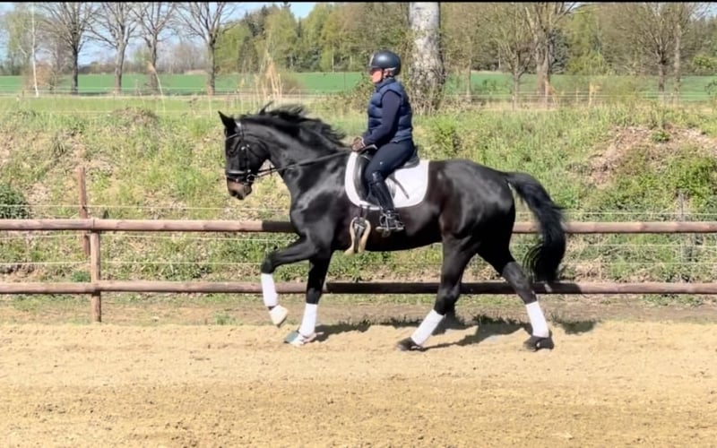 Hier steht der 10 jährige Rappwallach "Fred" zum Verkauf. Er ist mit seiner Größe von 175 cm ein absolut ehrliches und braves Pferd, welches immer gefallen will. Er ist als Lehrmeister für zuhause, wie auch als Partner im Dressurviereck durchaus geeignet. Er konnte sich in vielen A Dressuren mit 8 er Noten durchweg platzieren. L Dressur hat er bereits gewonnen. Ein grundsolider Partner im besten Alter. Er ist gut sozialverträglich. Versteht sich mit Artgenossen und ist immer freundlich und offen. Ein aktueller Röntgen Tüv inkl. Rücken und Hals liegt vor und ist ohne Befund. Wir freuen uns für diesen Charmanten Kerl ein tolles neues passendes Zuhause zu finden.