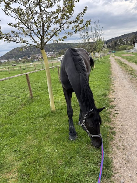 C'est à regret que je cherche une famille pour mon hongre Hannoverien de 9 ans, où il pourra vraiment s’installer pour de bon. Cette décision est extrêmement difficile à prendre, car il compte énormément pour moi. Suite à plusieurs examens vétérinaires, je l’ai complètement retiré de la compétition. Il n’est actuellement pas monté et est principalement proposé en tant que cheval de compagnie. Selon le vétérinaire, il existe une possibilité qu’il puisse, dans le futur, être monté à nouveau prudemment et de manière limitée pour des activités de loisir – mais sans aucune ambition sportive, à son propre rythme et uniquement dans la mesure de ses capacités physiques. Toute utilisation sportive est définitivement exclue. C’est un hongre très proche de l’homme, affectueux et sensible, qui tisse un lien étroit avec sa personne de référence. En été, il pâturait régulièrement avec d’autres hongres et s’est toujours montré harmonieux et social. Il est idéal pour des activités calmes comme le travail à pied. Il aime travailler avec l’humain, apprend rapidement et fait preuve de beaucoup de confiance et de cœur. Important : il ne doit pas être considéré comme un « cheval de sport ou de dressage bon marché » que l’on souhaite remettre à la compétition plus tard. Son bien-être passe avant tout. Il sera donc uniquement confié à des personnes très expérimentées, responsables et honnêtes – priorité à la sécurité. Les demandes de marchands ou d’intermédiaires sont inutiles. Pour toute réelle intention, merci de contacter uniquement par téléphone.