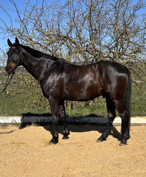 Vaccinated and dewormed, completely blacksmith-friendly, and absolutely reliable on the ground. He is familiar with groundwork, lunging, halter work, free lunging, free jumping, pole work, and walking out – very human-oriented, friendly, eager to learn, and affectionate. However, he is very difficult to ride, so he is explicitly not advertised as a riding horse. He is dominant in larger herds but gets along very well with a small group of 2-3 lower-ranking horses. For someone who enjoys working from the ground, this horse would be the perfect partner. Please only serious inquiries!