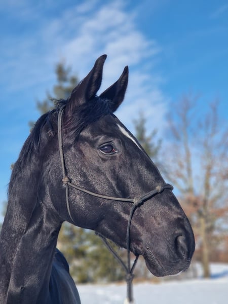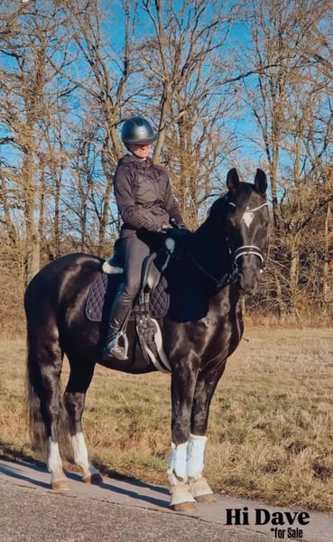 Ein Kleines Valentinstag´s Geschenk, Dave geb. 14.02.15 ist ein Wallach, der wirklich keine Wünsche offenlässt. Superlieb im Umgang, unkompliziert zu reiten, wunderbar weich an der Hand und dazu noch wunderschön – was will man mehr? Er ist selbstverständlich regelmäßig geimpft und entwurmt und ist alle 7 Wochen beim Hufschmied (vorne beschlagen), war zuvor aber auch Problemlos Barhuf. Unter dem Sattel ist Dave absolut unkompliziert. In der Halle eher etwas triebig, aufgrund seines sehr schwungvollen Trabes nicht unbedingt für "Sitz-anfänger" geeignet 😊 Er steht extrem fein an den Hilfen, ist eher zu weich als zu fest in der Hand und lässt sich ganz einfach am Zügel reiten. Er wird mit Gummigebiss ohne Sperrriemen geritten. Ausbildungsmäßig bringt Dave sehr viel mit: Fliegende Wechsel, Außengalopp, alle Seitengänge, Spanischer Schritt vom Boden und unter dem Sattel, an der Hand anpiaffiert. Beim Parcourspringen ist er ein absoluter Lehrmeister: Er schaut nie, möchte immer auf die andere Seite und gibt seinem Reiter ein großartiges Gefühl. Auch im Gelände ist er völlig brav – sowohl alleine als auch in der Gruppe. Dave geht täglich in der Gruppe aufs Paddock bzw. auf die Weide, wo er sehr verspielt ist. Aktuell steht er in einer Paddockbox, kennt aber auch Offenstallhaltung. In der Box ist er beim Füttern gegenüber anderen Pferden manchmal etwas grumpy, jedoch nie böse – er quietscht einfach gerne. Er ist schmiede- und verladefromm. Turniererfolge: siegreich in A-Dressur, platziert in A-Springen vorgestellt in L-Dressur und L-Springen Aktuelle Röntgenbilder liegen aus März 2024 vor. Dave wird im Auftrag verkauft, da seine Besitzerin komplett mit dem Reiten aufhört. Er wird mit komplettem Zubehör abgegeben (alles beim VK-Preis dabei, außer Sattel). Aktuell hat er einen neuen Amerigo Dressursattel, da die Sattelsuche schwierig war, würden wir diesen sehr gerne mitverkaufen 😊 Wir wünschen uns für Dave ein liebevolles Zuhause bei Menschen, die ihn zu schätzen wissen und ihm ein echtes Für-immer-Zuhause bieten. Bei weiteren Fragen gerne telefonisch oder per PN melden.